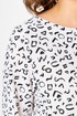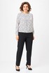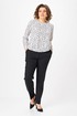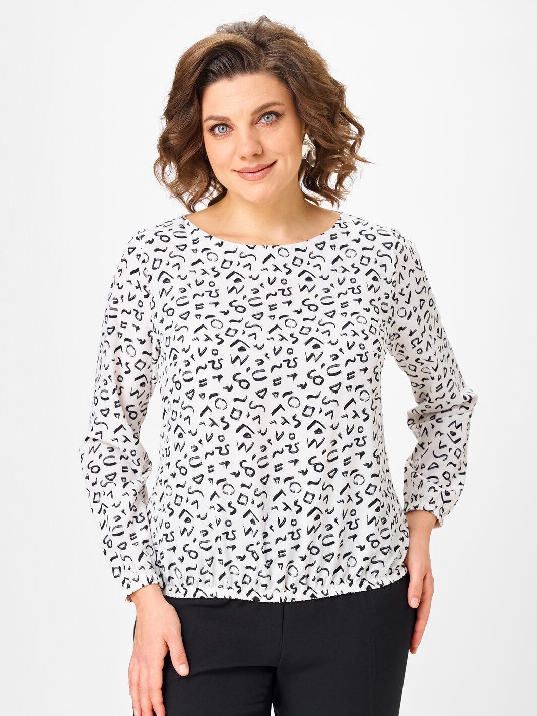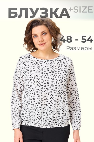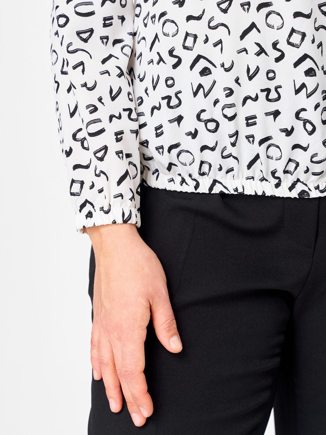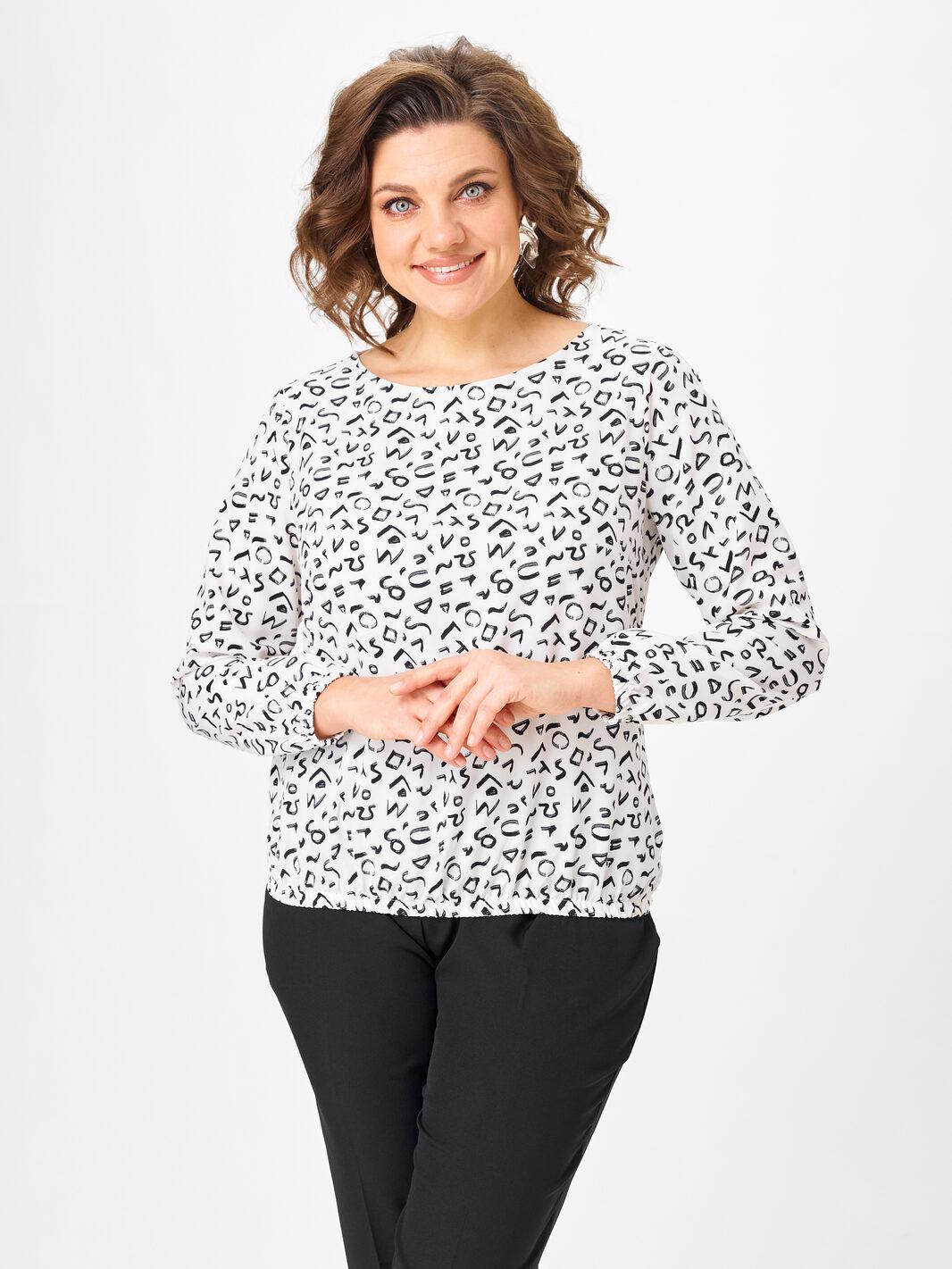 • Универсальность 365: Белый фон с ярким черно-белым принтом делает блузу базовой, но не скучной. Она отлично смотрится в классическом образе с черными брюками (как на фото), в офисе под жакет, на прогулке с джинсами или на праздничном ужине. Подходит для любого сезона.