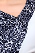 • Вертикальный колор-блок: Передняя часть состоит из принтованной леопардовой панели и контрастной белой вставки. Такое деление визуально «режет» объем, делая фигуру стройнее.