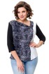 Блуза универсальна: мягкость трикотажа делает её идеальной для повседневной носки, а необычный крой и трендовый принт позволяют использовать её как основу для праздничного или делового образа.