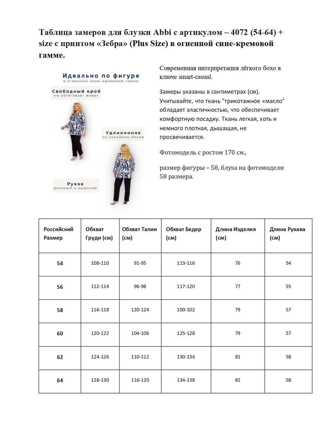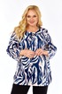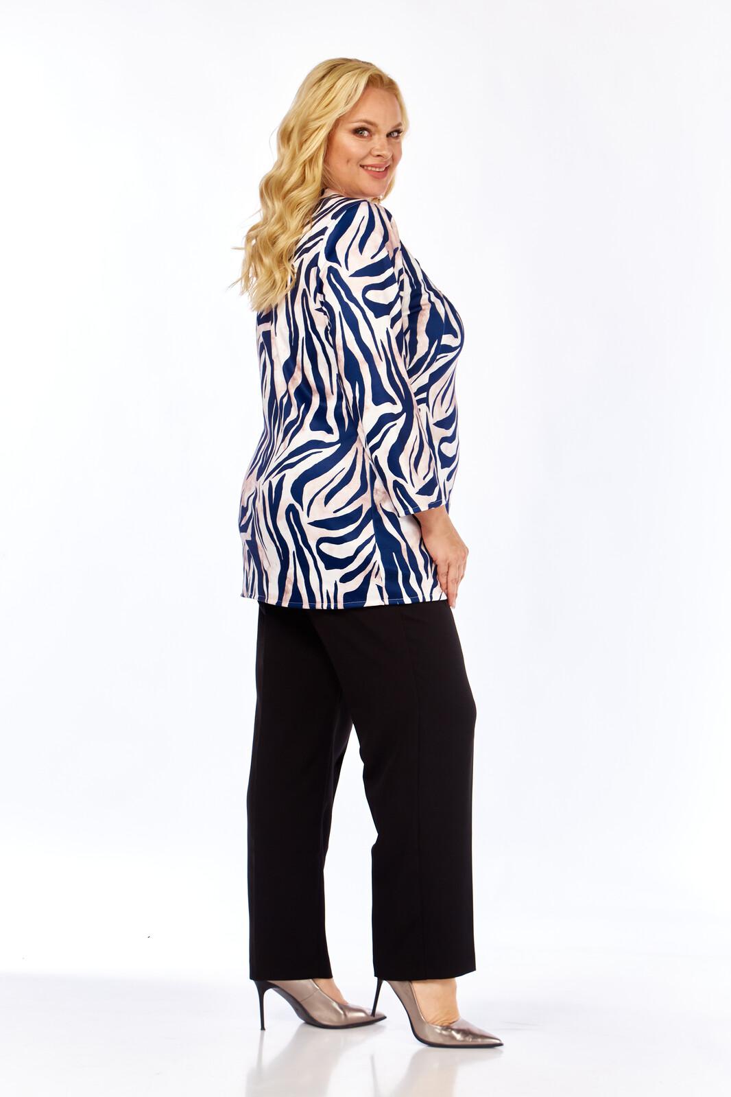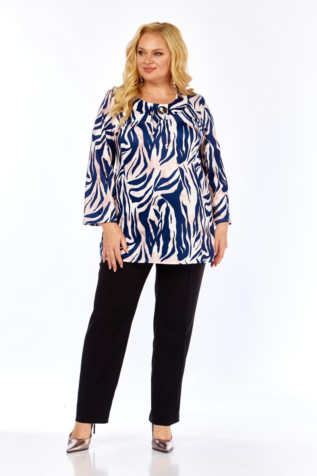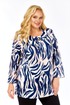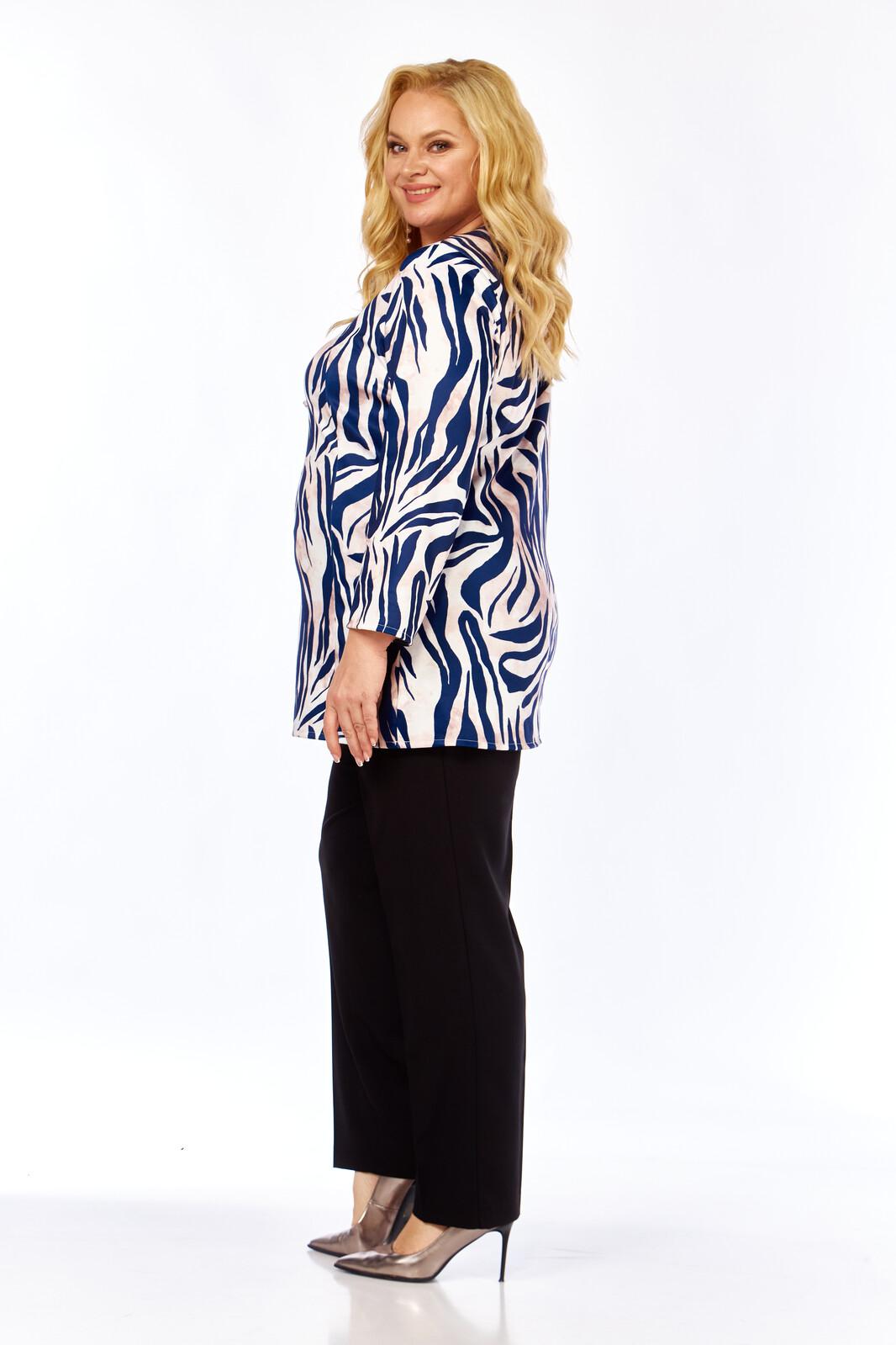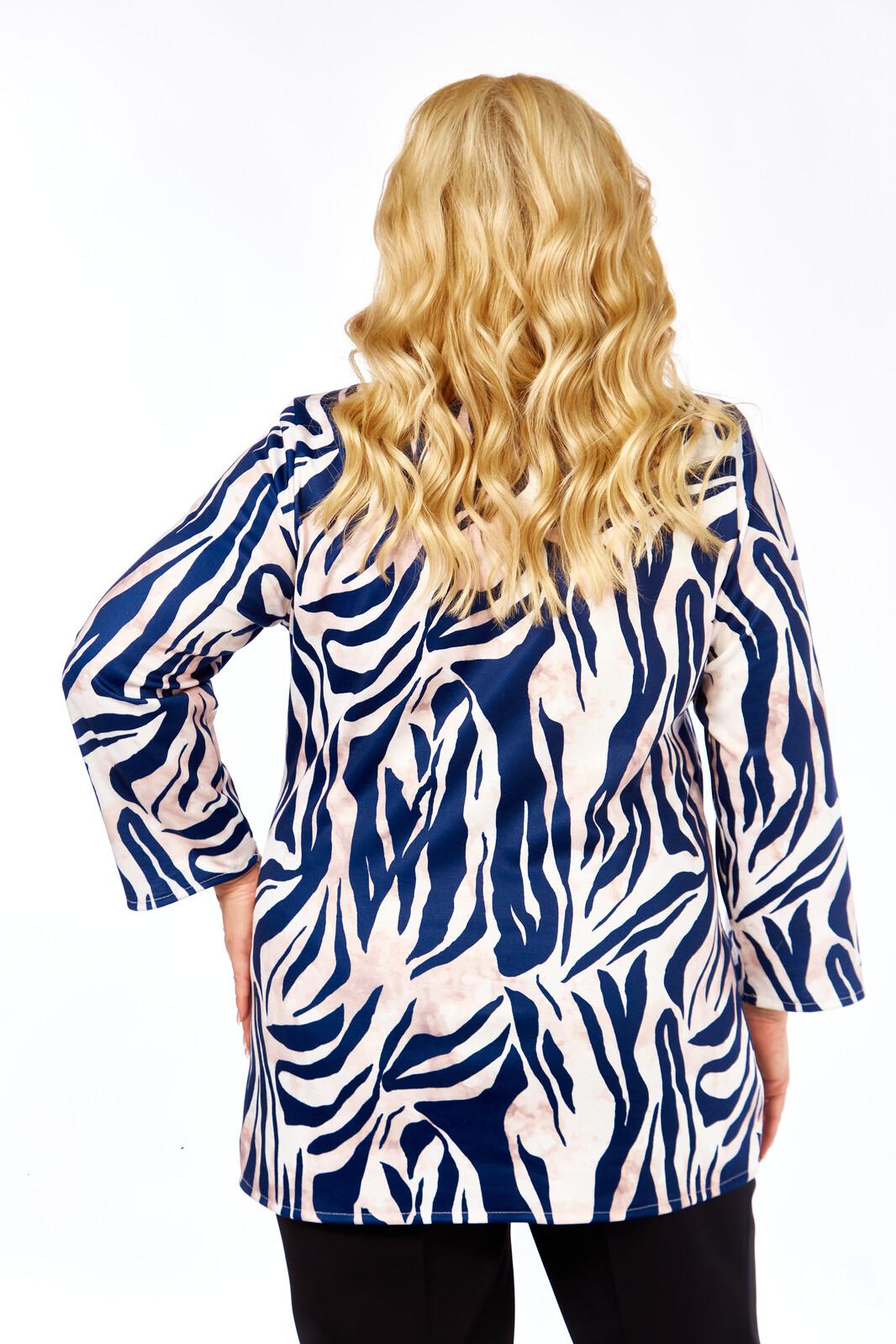 Блузка с современным модным принтом «Зебра» в сине-кремовых тонах, с размерами от 54-го до 64-го.