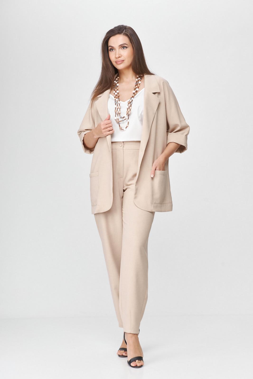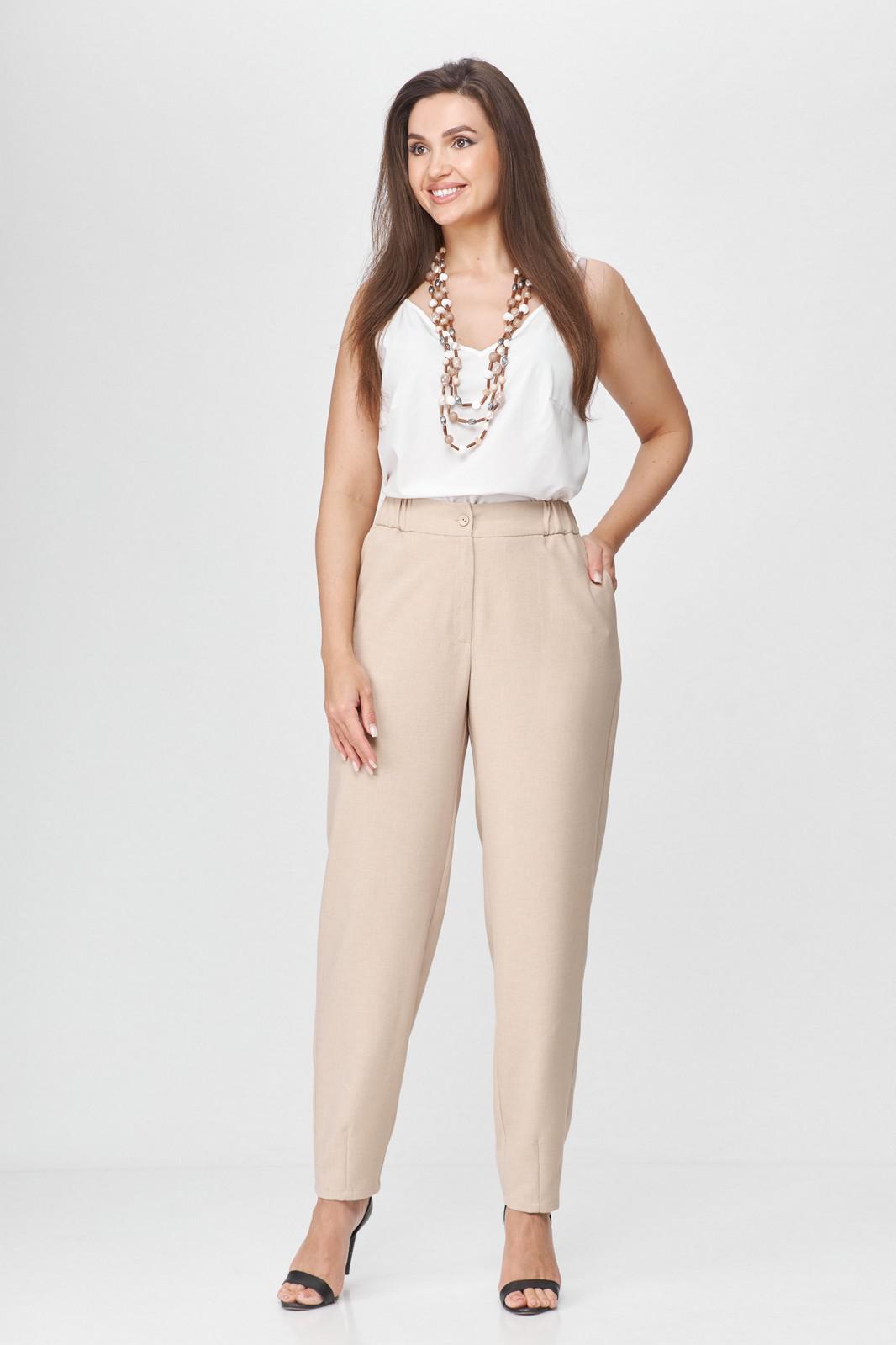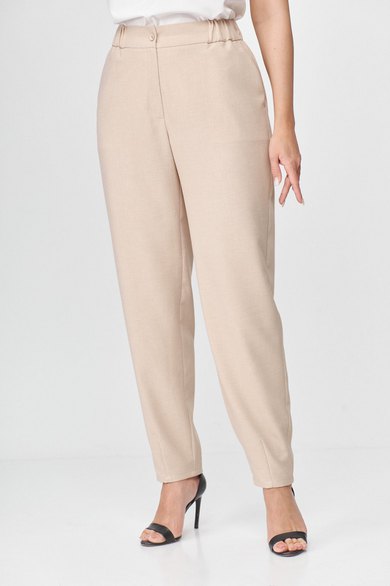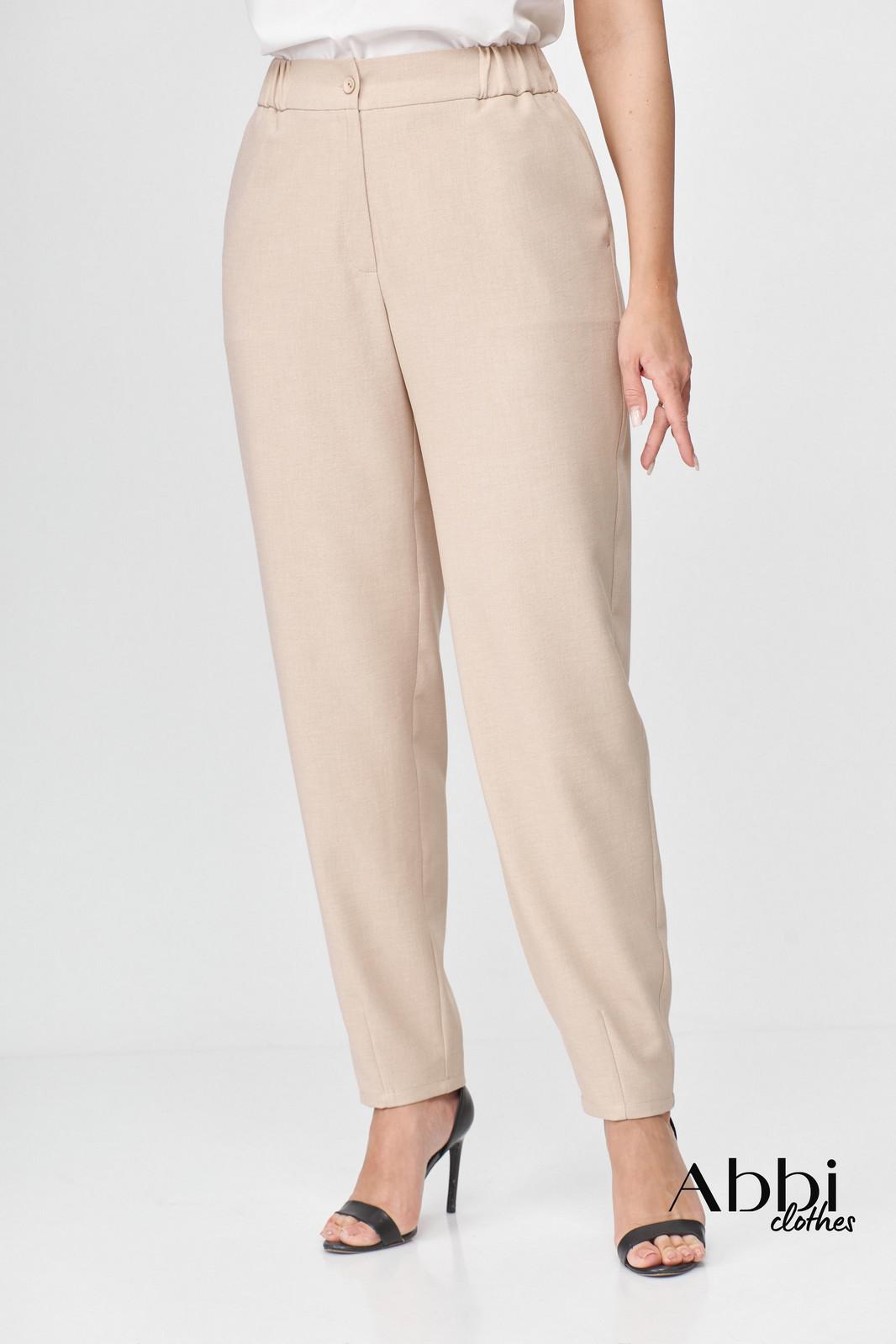 Брюки женские, свободного кроя. Слегка заужены к низу, покроя оверсайз. Прорезные карманы в боковых швах. Притачной пояс с эластичной тесьмой. По низу брюк декоративные вытачки придающие зауженный силуэт. Застежка на 2 пуговицы и молнию с цельнокроеным гульфиком. Так же можно приобрести жакет артикул 6001 Abbi или комплектом арикул 5004 Abbi.