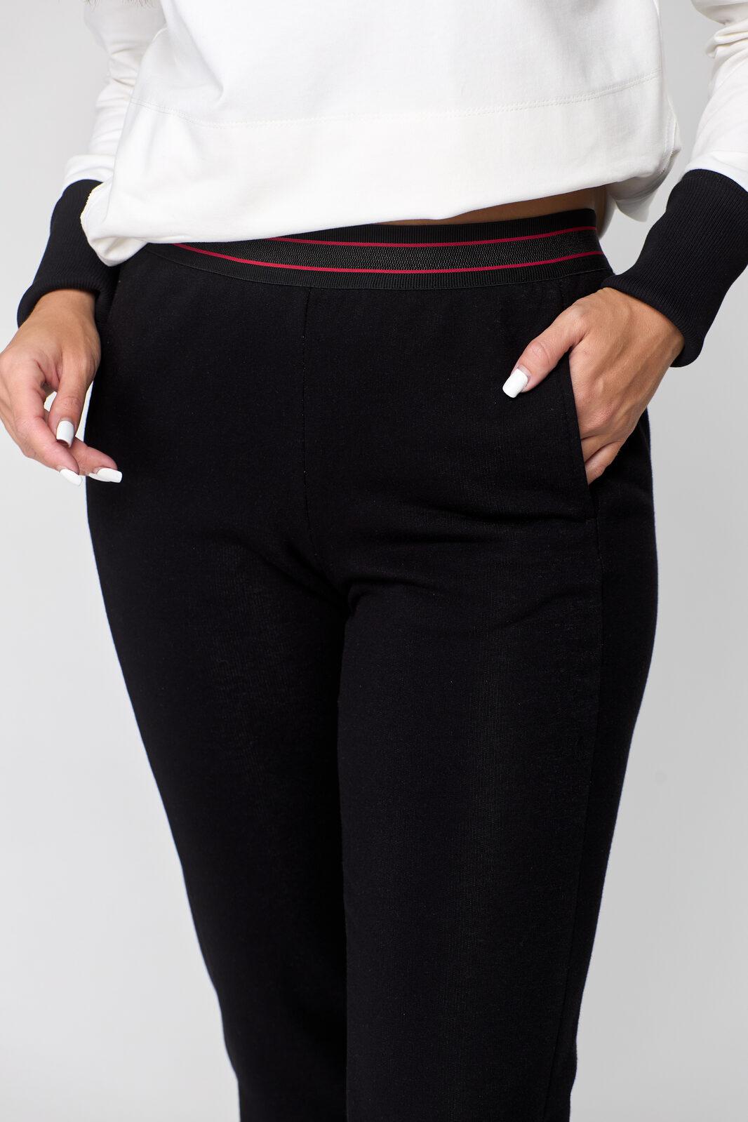 По низу задних половинок – манжеты из рибаны. По передней половинке – декоративная нашивка. Пояс в брюках выполнен из эластичной декоративной резинки.