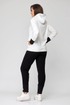 Брюки – зауженные к низу. Боковой шов перенесен на переднюю половинку, что зрительно стройнит.