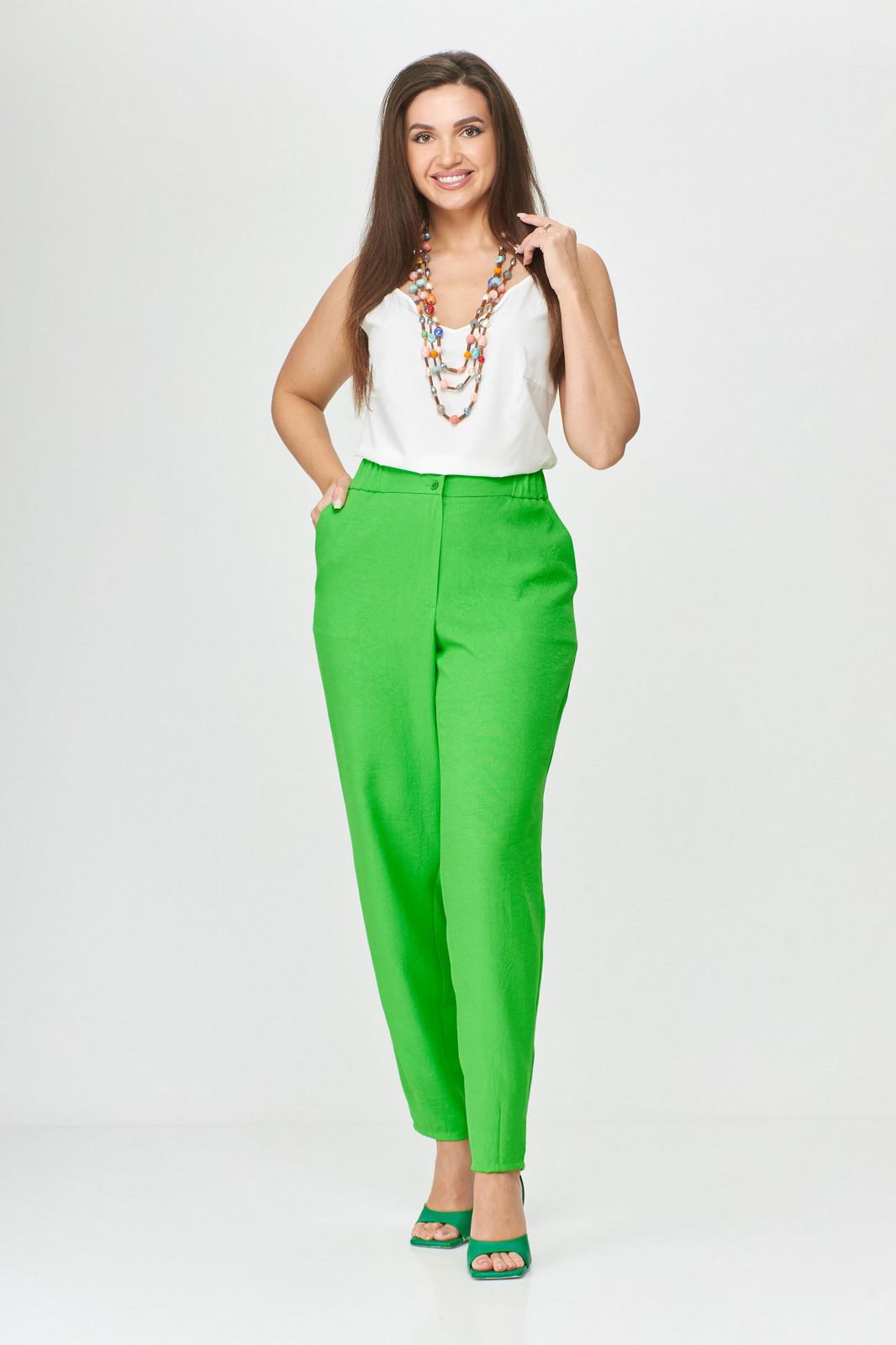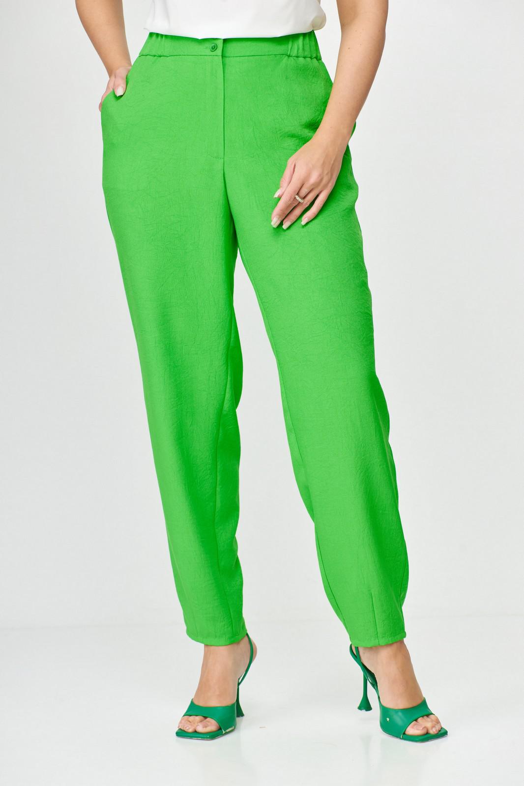 Брюки женские, свободного кроя. Слегка заужены к низу, покроя оверсайз. Прорезные карманы в боковых швах. Притачной пояс с эластичной тесьмой. По низу брюк декоративные вытачки придающие зауженный силуэт. Застежка на 2 пуговицы и молнию с цельнокроеным гульфиком. Так же можно приобрести по отдельности жакет артикул 6001 Abbi или комплектом 5004 Abbi.