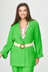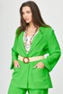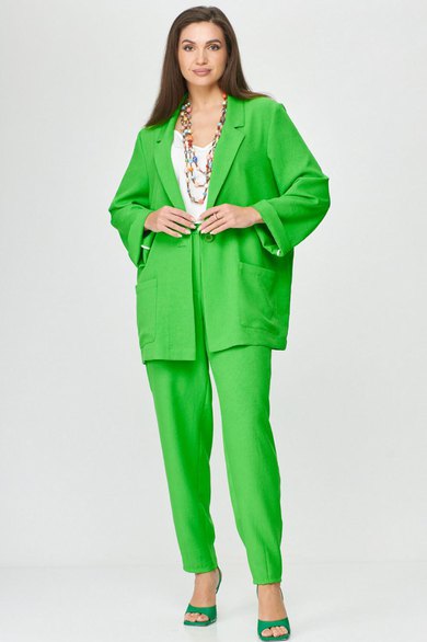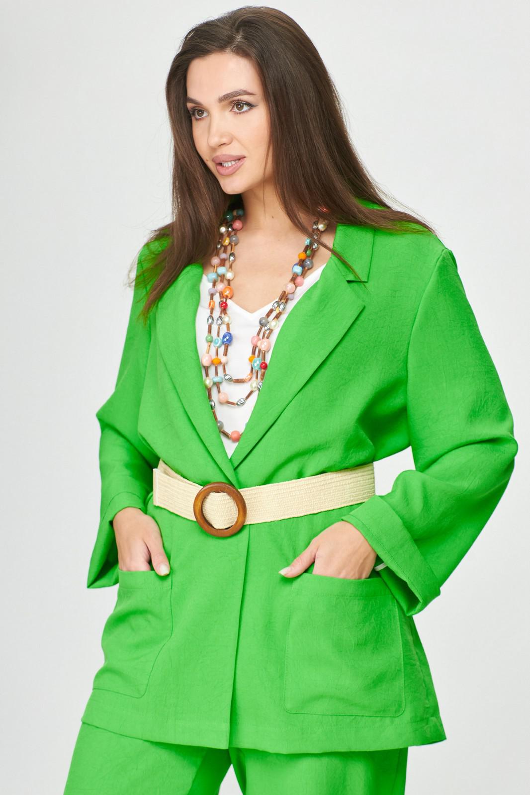 Женский жакет прямого силуэта для яркого и стильного летнего костюма. Вдохновленный стилем бохо, жакет имеет спущенную линию плеча и проймы, свободный одношовный длинный рукав с подгибкой, а также воротник втачной с цельнокроеным лацканом. Два прозрачных накладных кармана добавляют практичности и шарма. Жакет также отлично подойдет для работы в офисе. Срез горловины спинки без обтачки и застежка однобортная прямая на одну петлю и одну пуговицу дополняют дизайн. Регулируемый длинный рукав позволяет изменять стиль в соответствии с вашим настроением. Этот яркий женский жакет - идеальное дополнение к вашей летней гардеробной коллекции.