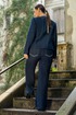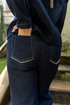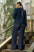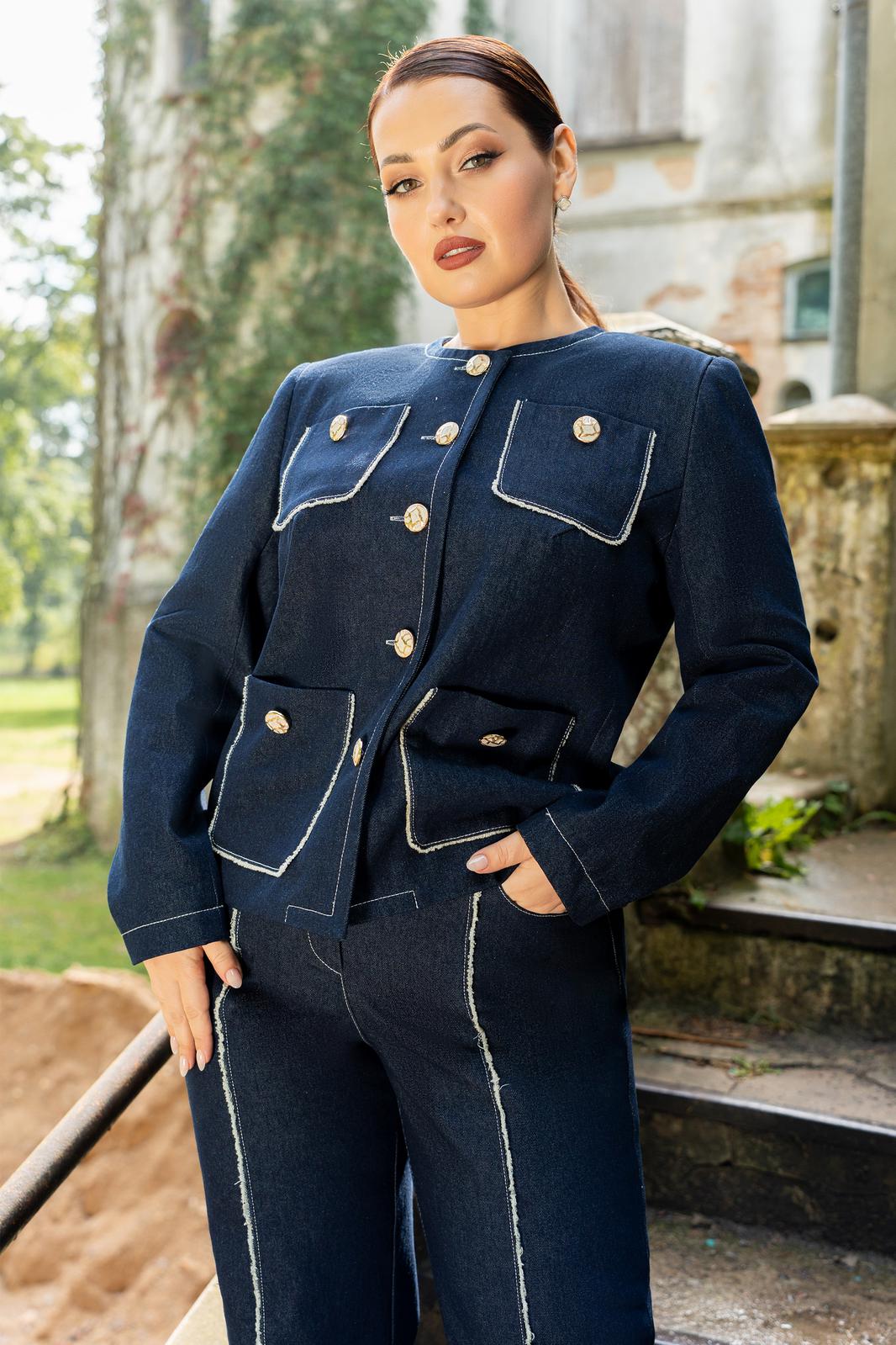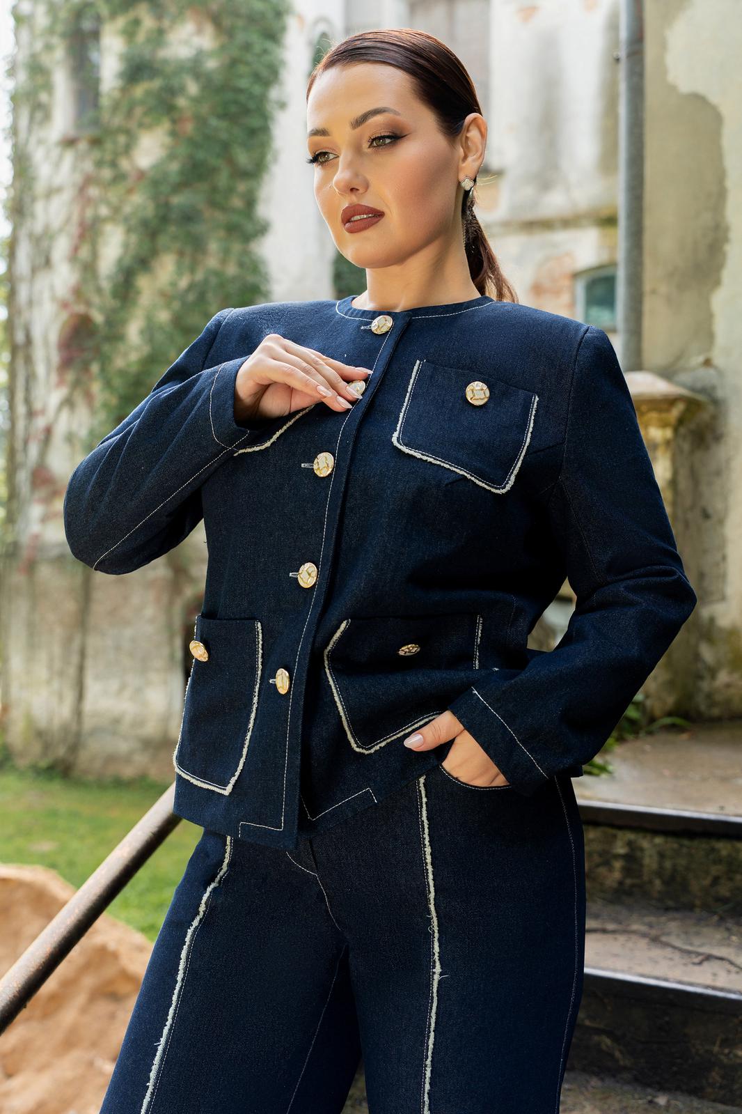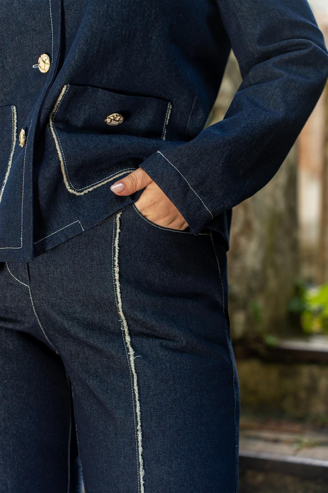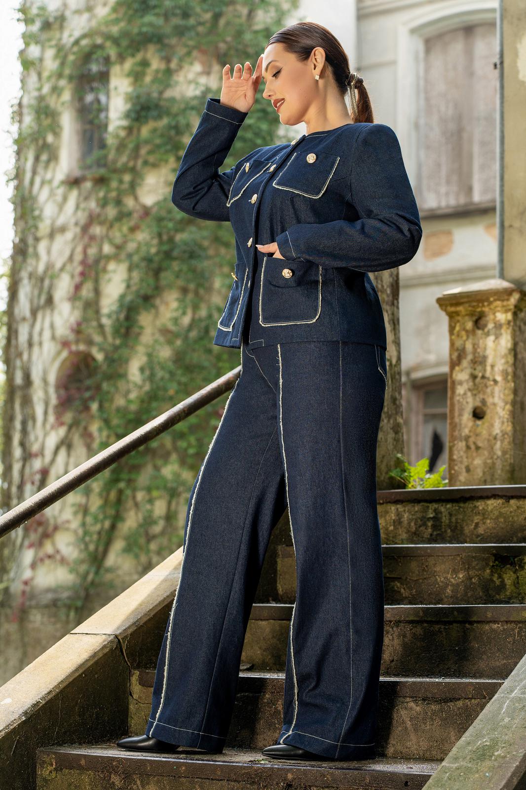 Женские брюки прямого силуэта представляют собой идеальное сочетание современной классики и комфорта. Изготовленные из качественного темно-синего денима, эти брюки обладают стильным дизайном с ярко выраженными складками по переду, добавляющими структуру и изысканность образа. Пояс по переду укомплектован шлёвками для ремня, что позволяет регулировать посадку, а застежка на тесьму-молнию и пуговицу обеспечивает надежное закрывание. Сзади пояс дополняется эластичной резинкой, предлагая дополнительный комфорт при носке. Брюки оснащены функциональными боковыми карманами со скошенными краями для более легкого доступа и накладными фигурными карманами сзади с декоративной бахромой, которая дает эксклюзивный штрих. Широкие прямые штанины позволяют легко сочетать брюки с различной обувью, от кроссовок до элегантных туфель. Эти брюки не только удобны в носке, но и придают любому образу утонченность и стиль.