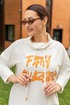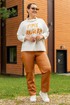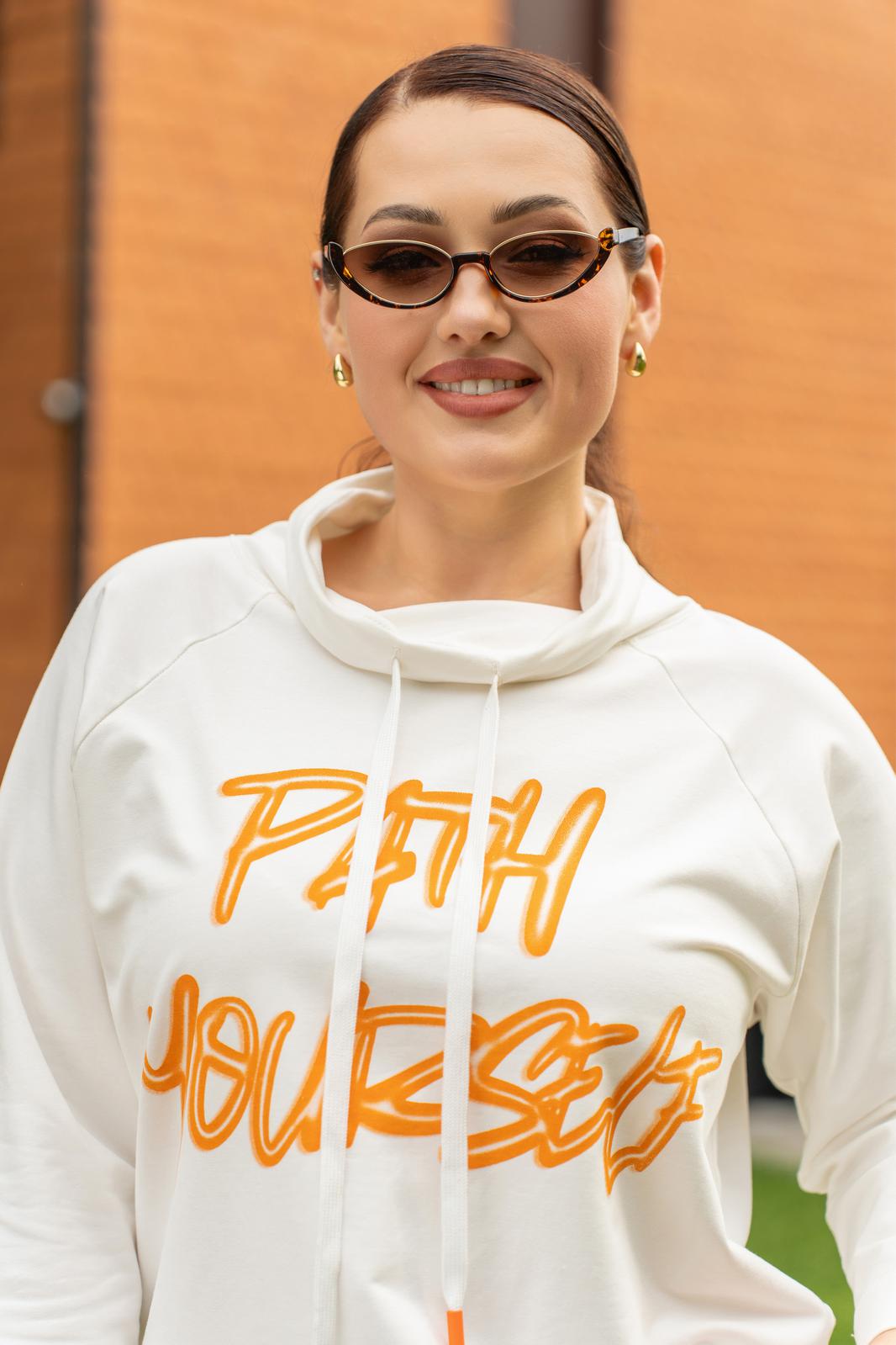 Джемпер женский прямого кроя, воротник-стойка со шнуром, с цветной печатью на полочке. Рукава втачные с притачными манжетами. Спинка цельная.низ с притачным поясом.