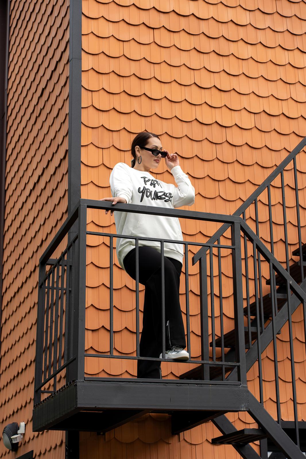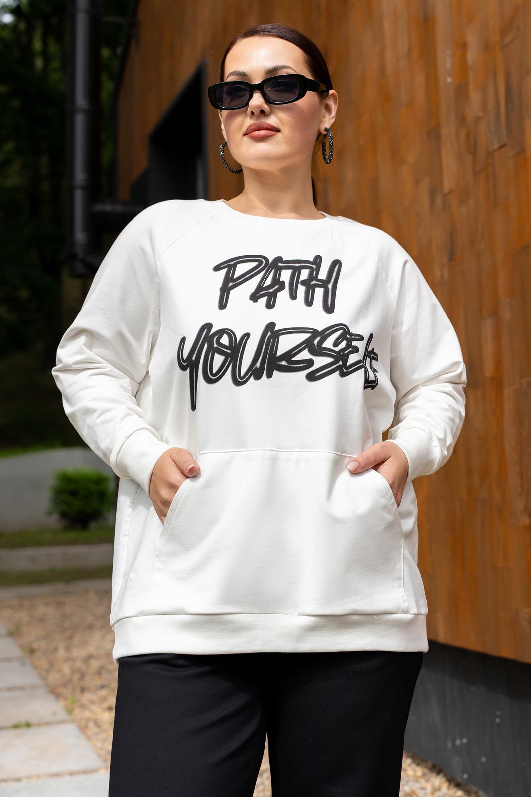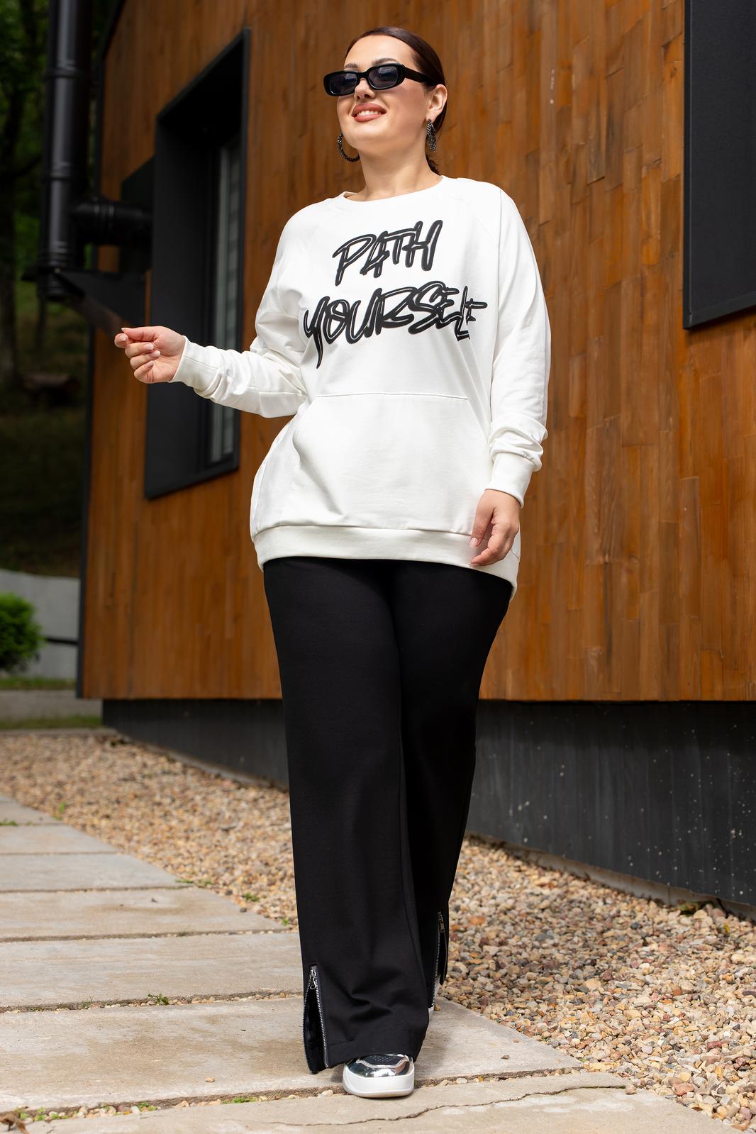 Джемпер прямого кроя с дизайнерской печатью , полочка с накладным карманом.Джемпер с притачными рукавами и манжетами.