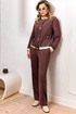Стильный и современный комплект, состоит из бомбера и брюк. Бомбер полуприлегающего силуэта, выполнен из премиальной ткани Вельвет с добавлением вискозы. Бомбер без подкладки, по переду с застежкой на металлические пуговицы и накладными карманами с застежкой на пуговицу. Стойка горловины бомбера и манжета рукава выполнены из мягкого трикотажного довяза, что придет модели особый стиль и комфорт при носке. Рукав втачной, полной длины. Брюки прямые, слегка зауженные к низу, выполнены из премиальной ткани Вельвет с добавлением вискозы. Пояс брюк полностью на резинке, в боковых швах функциональные карманы.