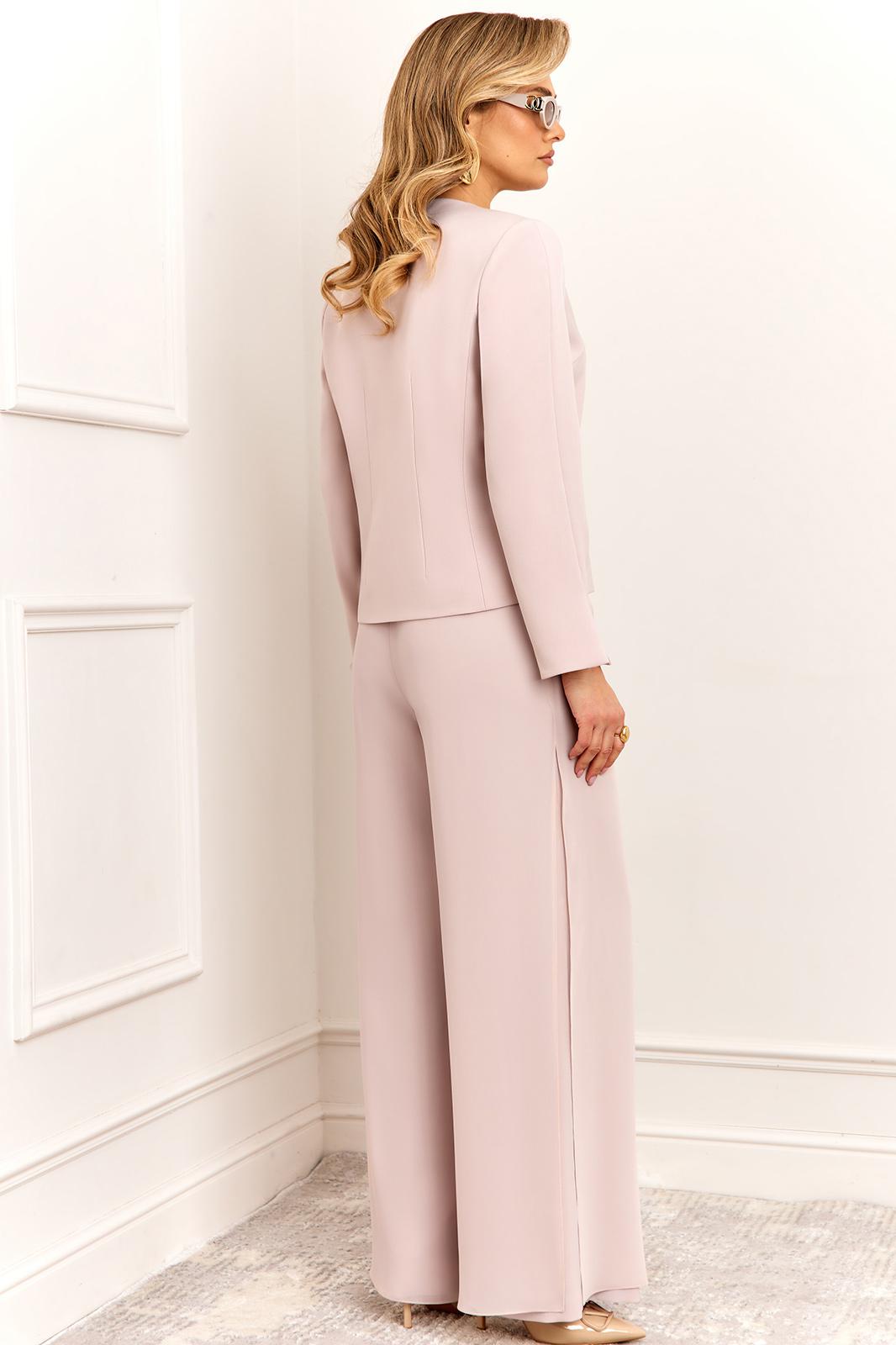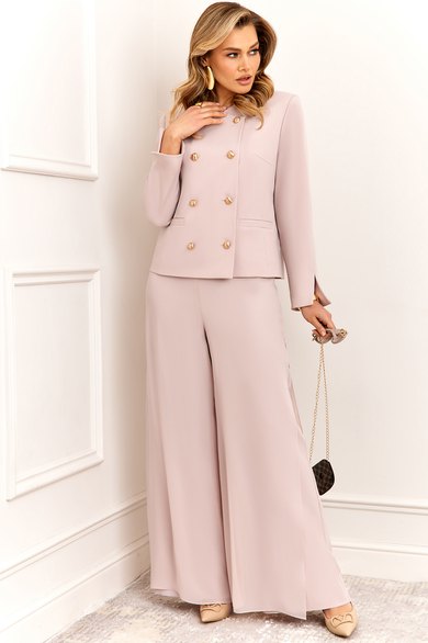 Стильный и суперэффектный костюм, состоит из жакета и брюк. Жакет полуприлегающего силуэта, выполнен из премиальной ткани Зара с добавлением вискозы. Жакет двубортный, по переду с застежкой на металлические золотые пуговицы и V-образным вырезом горловины, что придает модели особый шарм и нарядность! Жакет полностью на премиальной подкладке Grand. Рукав жакета втачной, полной длины, с небольшим разрезом по низу! Брюки — это отдельный вид искусства! Брюки прямого силуэта, выполнены из ткани Зара с добавлением вискозы, верхний слой брюк выполнен из летящего шифона, что придает модели особый стиль и нарядность. Брюки сбоку с застежкой на потайную молнию и пуговицы. Модель идеально украсит праздничный образ, но в тоже время прекрасно подойдет для ежедневной носки!