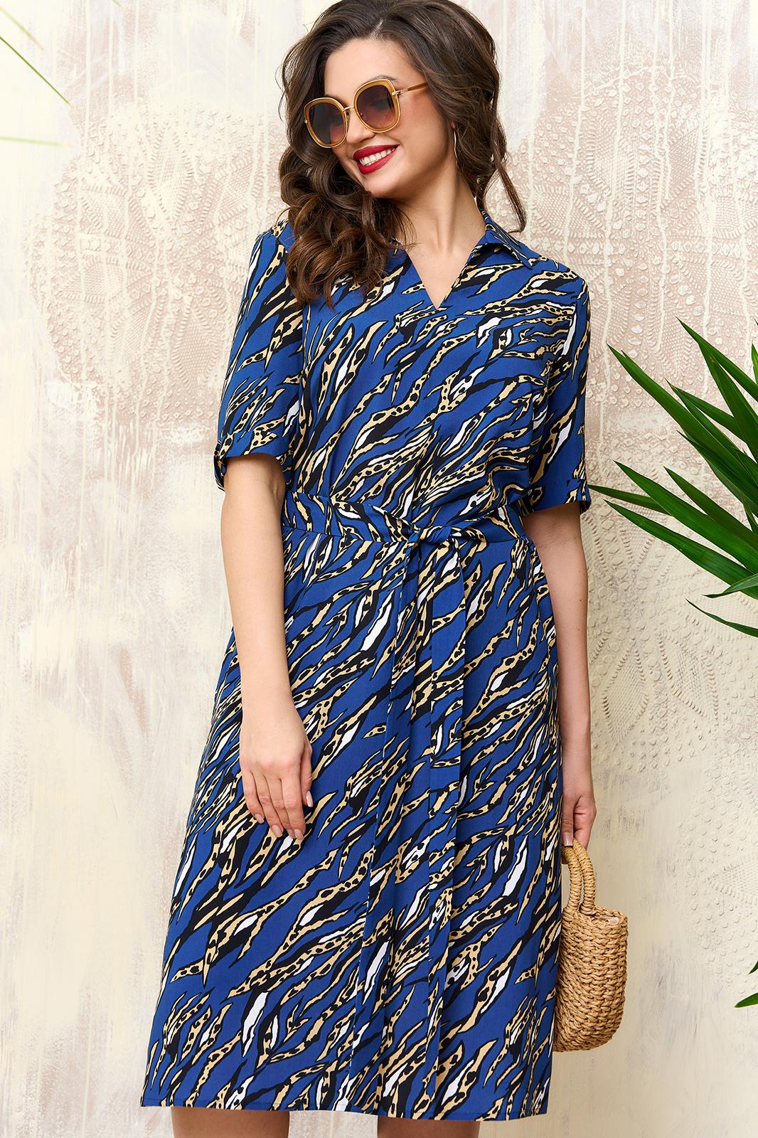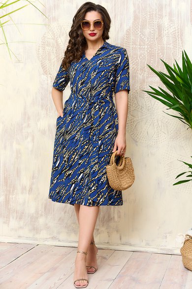 Стильное платье полуприлегающего силуэта, выполнено из натуральной ткани Штапель в составе с хлопком и вискозой с модным принтом. Платье с V-образным вырезом горловины, в боковых швах платья функциональные карманы. Рукав втачной с цельнокроеной манжетом. В комплекте идет съемный пояс из основной ткани. Модель удобная и практичная, отлично подойдет для ежедневной носки в жаркое время. Длина платья в размерах 48-52 - 114 см., 54-58 – 116 см. Длина рукава 30 см. Ширина рукава 20 см.