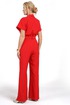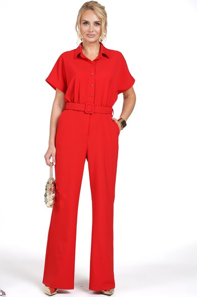 Комбинезон женский отрезной по линии талии, со спущенной линией плеча, со съёмным ремнём продергивающийся через шлёвки по боковым. Лиф переда с застёжкой на петли, пуговицы, по линии талии сборка.
