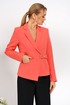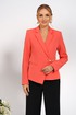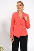 Жакет женский полуприлегающего силуэта, на подкладке, с ассиметричной застёжкой на пробивной люверс и пояс по левой стороне переда застёгивающийся на две петли и пуговицы, с внутренней застёжкой на петлю и пуговицу. Перед с рельефными швами, по правой части прорезной карман с листочкой. Спинка с рельефными швами и средним швом. Рукава втачные, двухшовные, длинные. Воротник отложной с отворотом.