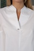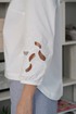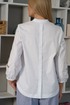Блуза женская прямого, свободного силуэта, с вырезом по переду V- образной формы с небольшим запахом, с разноуровневым низом (спинка длиннее переда). Декорированная по низу рукавов аппликацией «вышивка», по переду нашивкой.