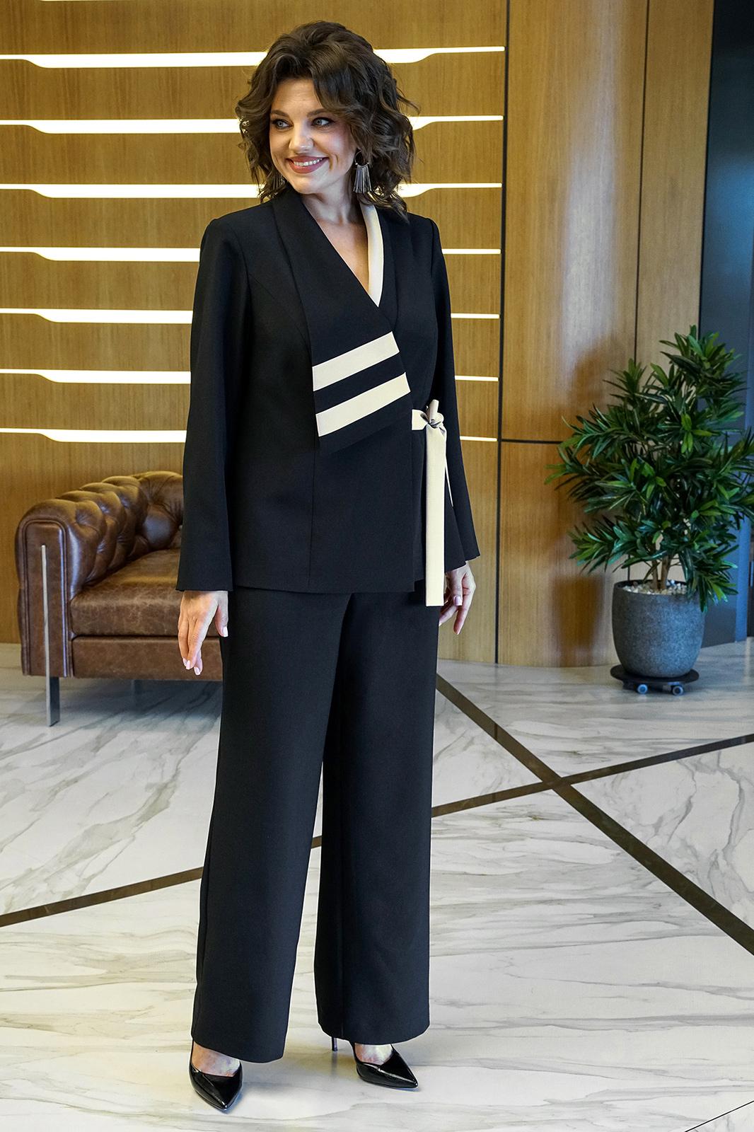 Перед с рельефными швами. Спинка со средним швом и рельефными швами. Рукава втачные, длинные, двухшовные. Воротник комбинированный левый «шалька», правый «апаш» с отделочными деталями из отделочной ткани.