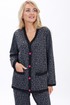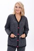 Кардиган прямого, свободного силуэта понизу с притачным поясом, с застёжкой по притачной планке на петли, пуговицы. Перед с накладными карманами. Рукава втачные, одношовные, длинные понизу с притачными манжетами. Планка борта и горловины, манжеты рукава, отделочная деталь кармана, пояс по низу выполнены из трикотажного довяза.