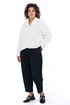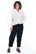 Брюки типа «банан», с притачным поясом по боковым на резнике, с застёжкой типа «гульфик» на молнию и по краю пояса на петлю, пуговицу. С конструктивной выточкой понизу передних и задних частей. Передние части с боковыми карманами, с мягкой застроченной складкой выходящей от входа кармана. Задние части с талевыми выточками и мягкой застроченной складкой от верха.