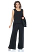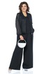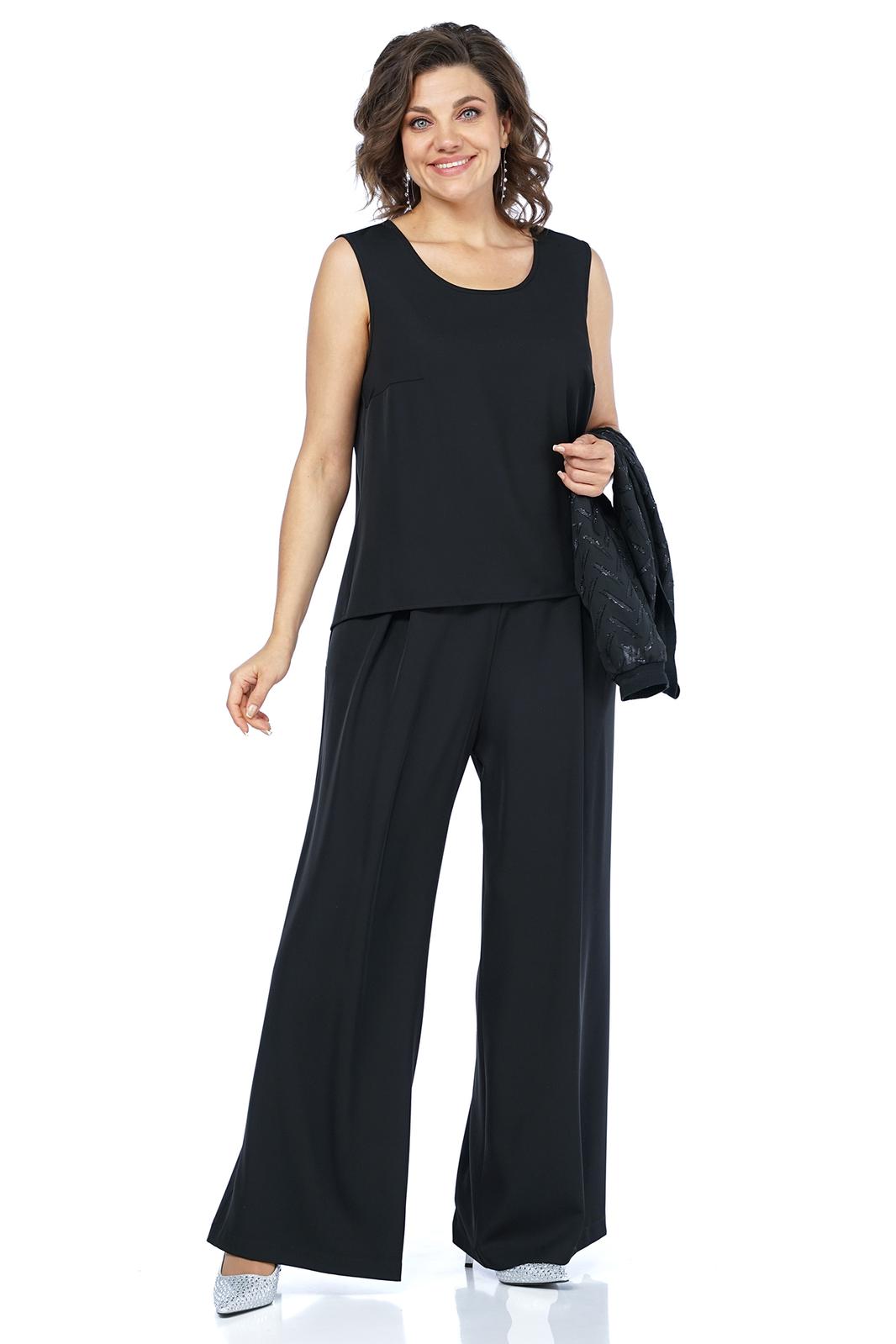Брюки широкие свободные, прямого силуэта, с притачным поясом с резинкой по боковым. Застёжка по левому боковому на потайную молнию и петлю пуговицу по поясу. Передние части с косыми боковыми карманами, с мягкими бантовыми складками от пояса. Задние части с талевыми выточками