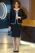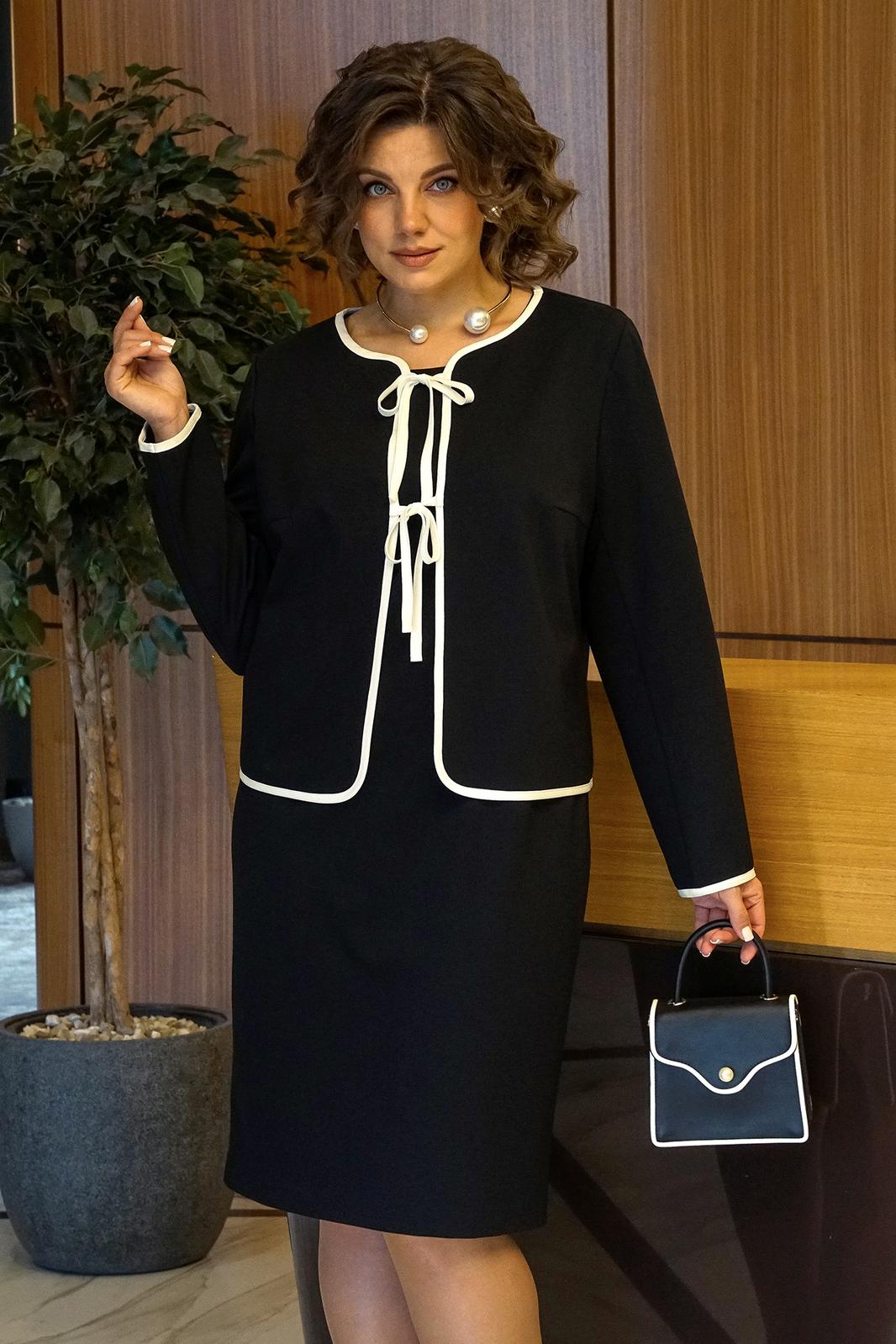 Платье полуприлегающего силуэта, с застёжкой на потайную молнию в среднем шве спинки. Перед с нагрудными и талевыми выточками. Спинка с талевыми выточками и шлицей.