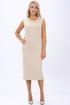 Платье полуприлегающего силуэта. По горловине и пройме бейка. Перед с нагрудными и талевыми выточками. Спинка со средним швом и талевыми выточками.
