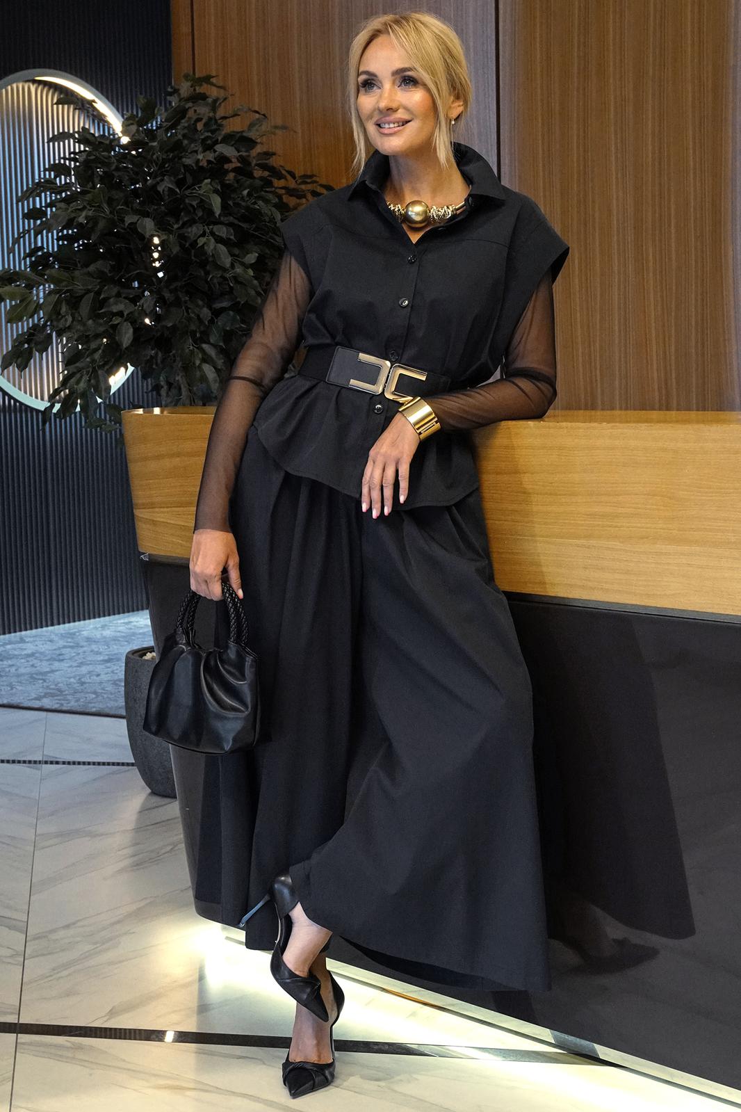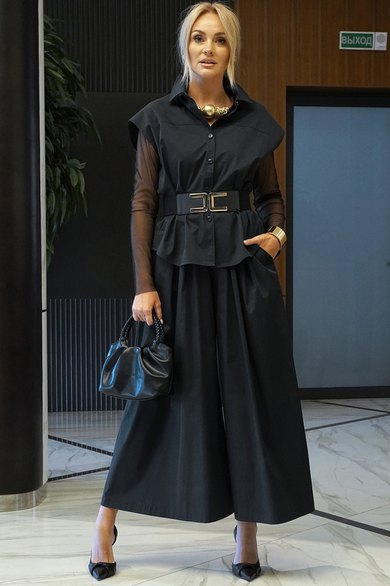 - Тип ткани: Блузка, Юбка-брюки платьево-блузочного ассортимента Жилет, Юбка-Брюки 60%п/э, 37% вискоза,3%эластан ( Мэмори) . Блуза сетка 98%п/э, 2%спандекс