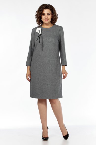 Платье А-образного силуэта, с застёжкой на потайную молнию по среднему шву спинки. Перед с нагрудными выточками. Рукава втачные, двухшовные, длиной 3/4, по окату сборка. Платье декорировано цветком.