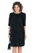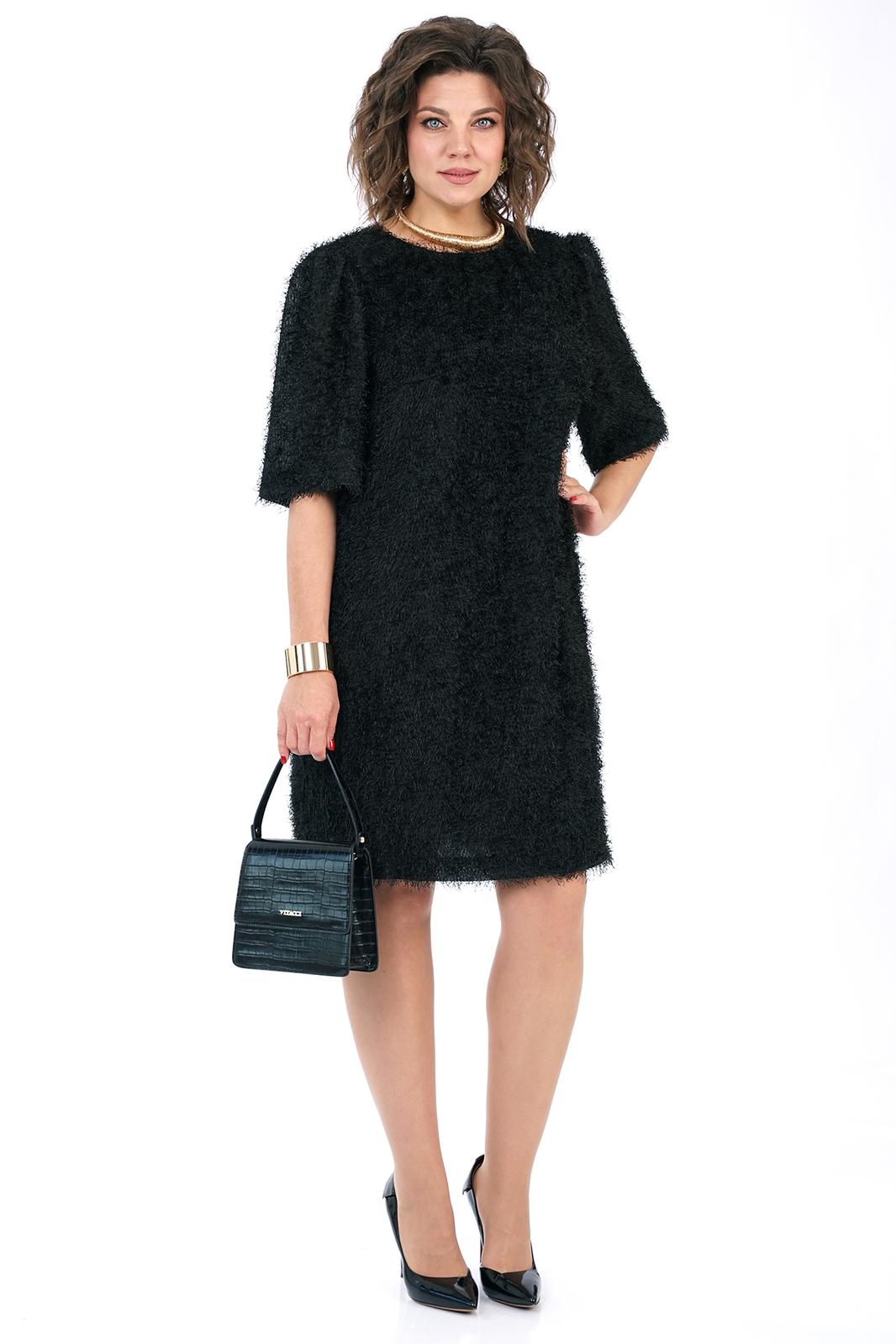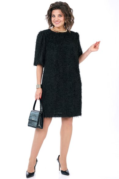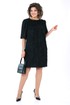 Платье А- образного силуэта, на подкладке. Перед с нагрудными выточками. Спинка со средним швом с разрезом и застёжкой на навесную петлю и пуговицу. Рукава втачные, одношовные, короткие.