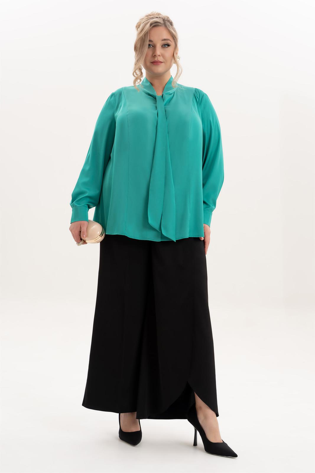 Прекрасная классическая блуза с воротником - бантом имеет прямой крой, поэтому отлично подходит для любого типа фигуры. Спинка со средним швом. По переду блузы есть рельефы от плечевого шва, в боковых швах - небольшие разрезы. Блуза изготовлена из приятной к телу ткани, гладкая фактура не мнётся и сохраняет свой первоначальный вид даже после многократных стирок. Рукав втачной, одношовный, длинный с манжетой на две петли и пуговицы. Комфортная модель для работы и просто для повседневного применения, так и к композиции нарядного ансамбля. Элегантная блуза с бантом - утончённая универсальность. Она гармонично дополнит Ваш гардероб, став незаменимым элементом на все случаи жизни. Гладкая фактура материала и длинные рукава добавляют элегантности и изысканности. Благодаря своему универсальному назначению, эта блуза подходит как для офисного стиля, так и для повседневного ношения, и в том числе на выход. Её однотонная структура и бескарманная конструкция делают блузу идеальным выбором для тех, кто ценит простоту и стиль.