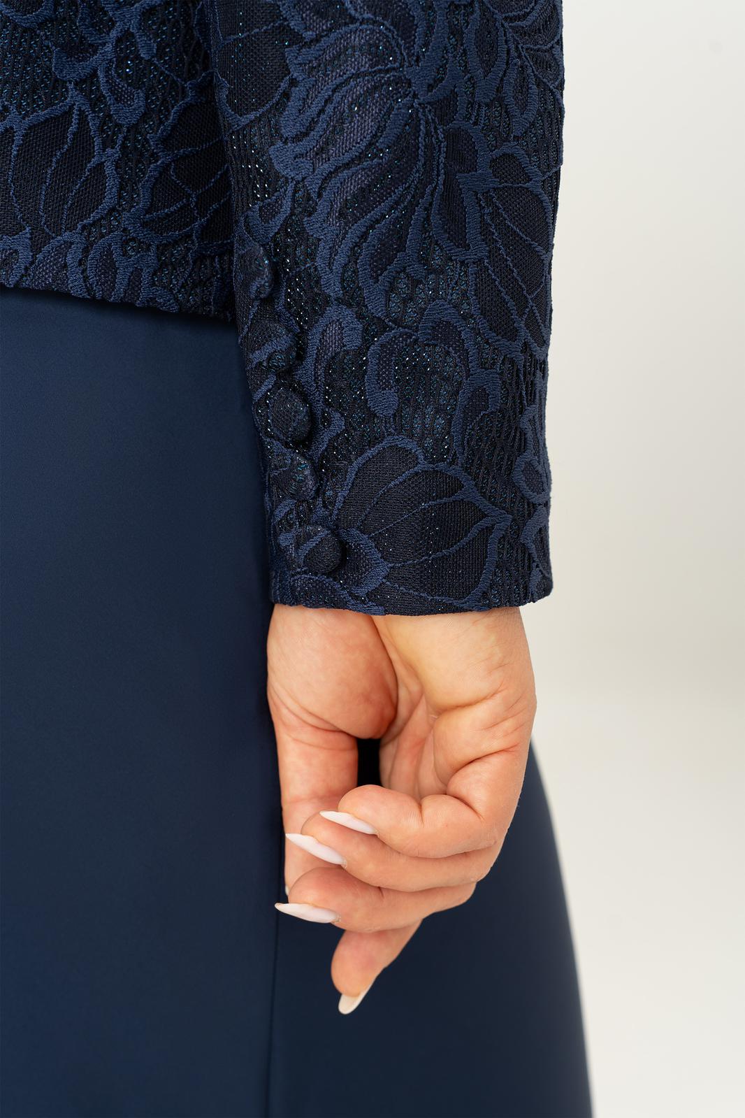 Красивый и стильный комплект в элегантном сочетании однотонного платья из атласа и жакета из кружевного жаккарда подойдет и для строгого образа, и для создания светлого, яркого и нежного лука с романтичными мотивами. Жакет короткий, полуприлегающего силуэта на подкладке. Спинка со средним швом. По переду жакета есть рельефные швы от плеча. Застёжка на петли и пуговицы. Рукав втачной , длинный, двухшовный. Горловина круглая, смотрится очень актуально и эффектно в сочетании с накладными карманами. Этот жакет подойдет и к брюкам и к платью, что позволяет создать много шикарных образов. Второй элемент комплекта — платье из струящегося атласа, кроенное по косой, что обеспечивает красивую посадку и мягкое облегание по фигуре. Углубленная горловина добавляет лёгкой чувственности, а нагрудные вытачки от проймы подчёркивают линию груди. Выбор этого стильного наряда станет замечательным дополнением вашего гардероба для особых случаев, обеспечивая вам стиль и комфорт.