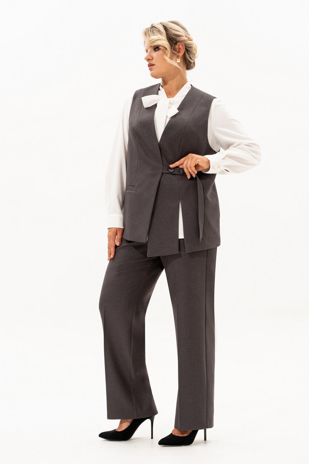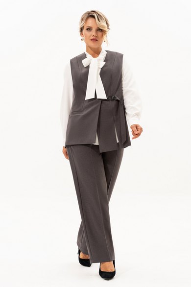Нарядно- повседневный комплект это идеальное решение для Вашего гардероба. Комплект состоит из трех предметов - прямые брюки с высокой посадкой прямого кроя на молнии и на резинке, с боковыми карманами сочетаются с любыми базовыми вещами. Универсальный классический жилет с V-образным вырезом горловины превосходно садится по фигуре, на правой полочке обработан прорезной карман с листочкой, на левой разрез , застежка обработана на отлетном хлястике ,на петлю и пуговицу. Этот элемент делает его более интересным. Жилет на подкладке . Ассиметричный жилет можно одевать поверх тонкой одежды. Прекрасная классическая блуза с воротником - бантом имеет прямой крой, поэтому отлично подходит для любого типа фигуры. Спинка со средним швом. По переду блузы есть рельефы от плечевого шва, в боковых швах - небольшие разрезы. Блуза изготовлена из приятной к телу ткани, гладкая фактура не мнётся и сохраняет свой первоначальный вид даже после многократных стирок. Рукав втачной, одношовный, длинный с манжетой на две петли и пуговицы. Комфортная модель для работы и просто для повседневного применения, так и к композиции нарядного ансамбля. Элегантная блуза с бантом - утончённая универсальность, комфорт. Базовый брючный комплект идеален для повседневного образа- деловая встреча, в офис. Современный комплект также будет хорошо смотреться как вечерний наряд на различные мероприятия, праздники, день рождения, корпоратив. Шикарный нарядный станет незаменимым в Вашем гардеробе . Этот комплект подчеркнет Вашу уверенность и стиль.
