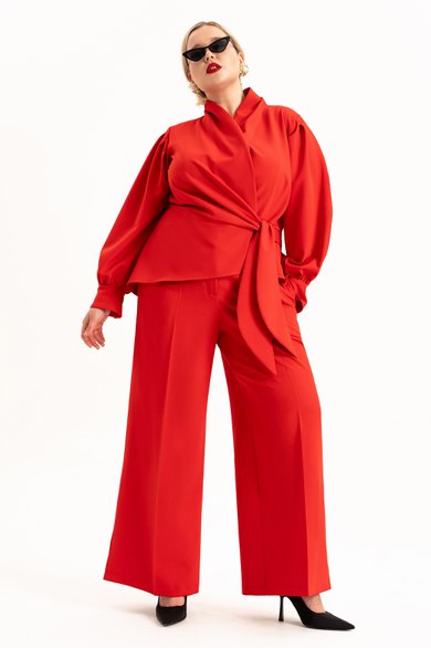 Практичные и функциональные брюки гармонично сочетают комфорт и современный стиль. Незаменимый элемент гардероба для тех, кто ценит удобство в сочетании с актуальным дизайном. Брюки с широкими штанинами палаццо выгодно подчеркивают женственные формы, а свободный крой обеспечивает удобство в любой ситуации. На брюках обработаны карманы в боковых швах, по талии пояс с застежкой на молнию и частично на резинке. По боковым швам обработаны разрезы. Благодаря использованию высококачественных материалов, они обладают отличной плотностью фактуры, обеспечивая удобство и долговечность. Высокая посадка добавляет элегантности и стройности фигуре, а прямая модель идеально подходит для женщин с любым типом фигуры, а также высокого и низкого роста. Благодаря наличию резинки на талии обеспечивают идеальный силуэт и удобство при носке. Классическая модель для полных леди и девушек плюс сайз. Отличное решение для всех кто ищет стильные базовые брюки большого размера.