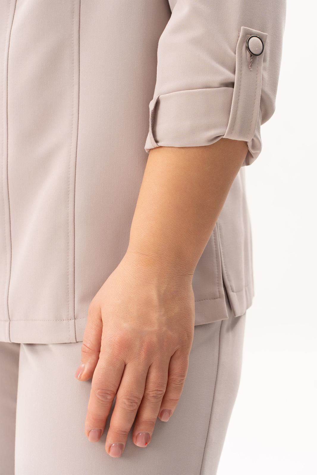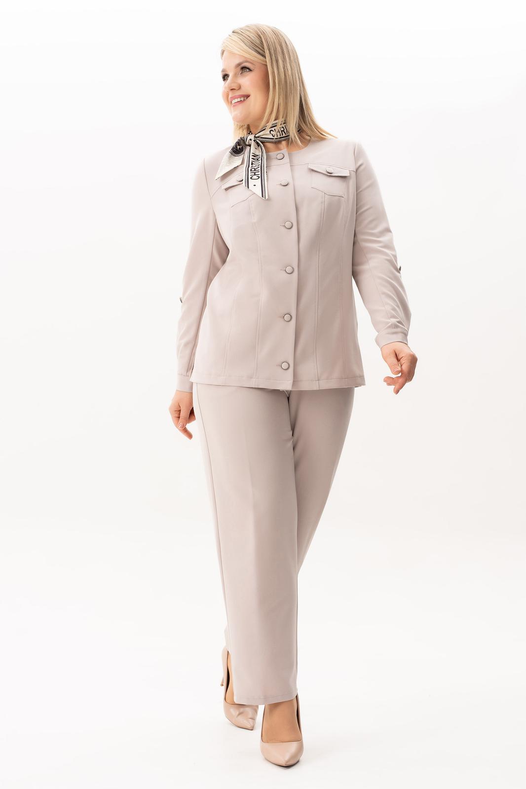 Брючный костюм из костюмной ткани гальяно - это идеальное сочетание комфорта и элегантности. Такой костюм подходит как для офисного делового образа, так и для повседневного ношения. Жакет костюма выполнен в классическом стиле на пуговицах, без воротника и с накладными карманами. Рукав длинный на манжете с патой на петлю и пуговицу. По боковым швам обработаны разрезы. Брюки костюма имеют прямой крой, что позволяет создать строгий и элегантный образ. Карманы на брюках расположены по бокам, что добавляет практичность и функциональность. Пояс брюк на резинке. Этот костюм не только обеспечит Вам ощущение комфорта в любой ситуации, но также придаст изящность и женственность Вашему образу. Если к костюму добавить из Вашего гардероба нарядную блузу - получится нарядный комплект.