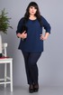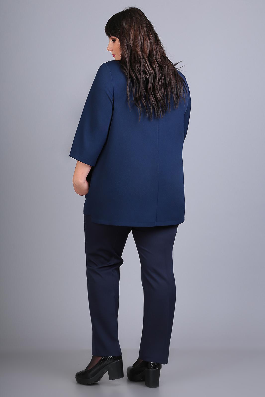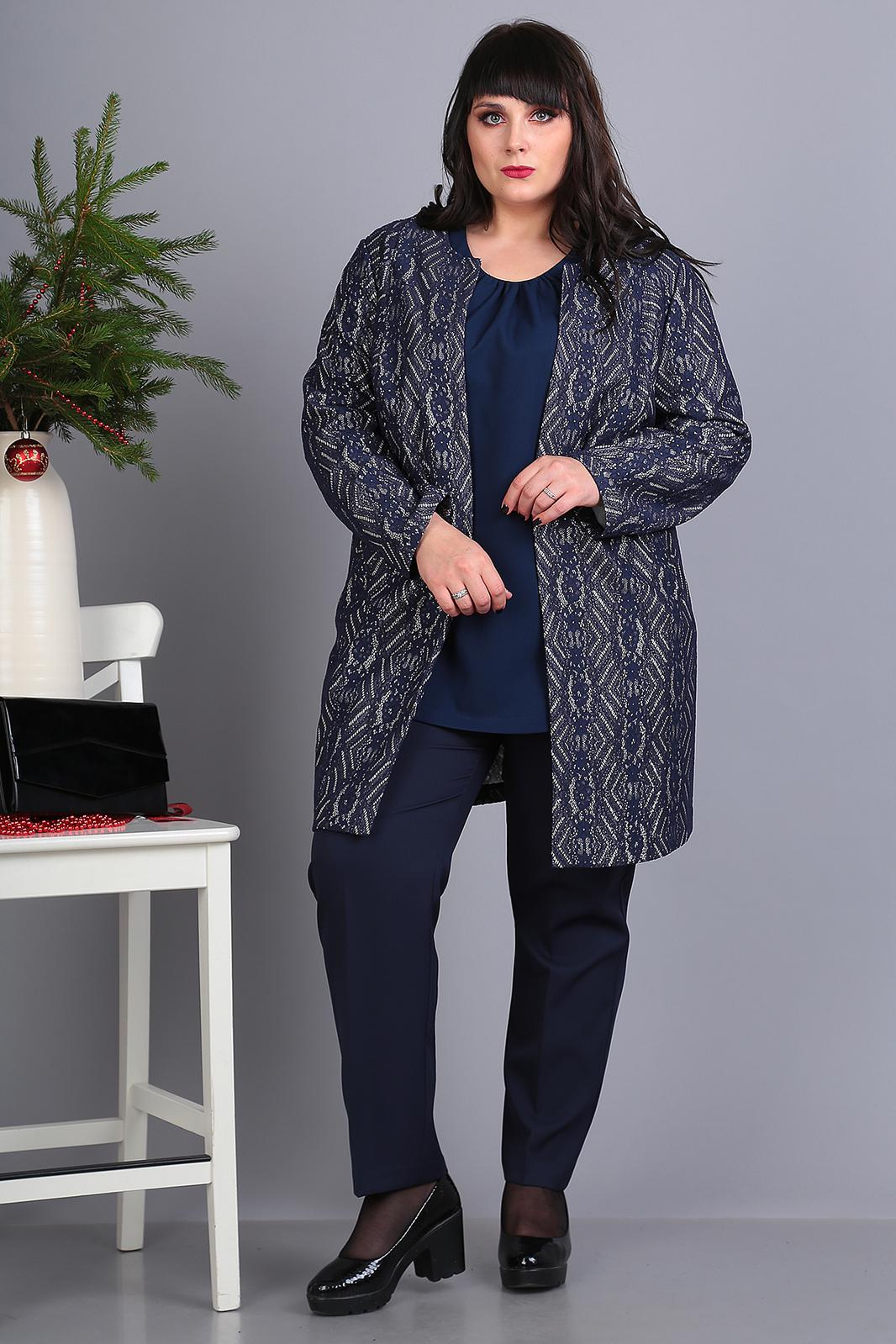 Нарядный женский комплект состоит из жакета, блузы и брюк. Жакет из гипюра на атласной основе, с контрастным геометрическим рисунком. Прямой силуэт не сковывает движения, в нем вы будете чувствовать себя комфортно в течении всего дня. Нагрудная вытачка направлена от плечевого шва, функциональные прорезные карманы дополняют геометрию практичной строгостью. Спинка со средним швом. Изделие без подкладки, швы окантованы тесьмой. Блуза выполнена из креповой ткани, с необычным асимметричным низом и разрезами в боковых швах, круглым вырезом горловины со сборкой. Рукав одношовный, втачной длиной 45 см. Брюки с высокой посадкой с вертикальными стрелками визуально стройнят ноги, в пояс вставлена резинка. Эта модель брюк идёт в комплекте с жакетом и блузой в 64-68 размерах, а в 58-62 размере брюки с притачным поясом, вставленной резинкой по боковым швам, имитацией карманов в рамку, кокеткой на задней части. На передней части брюк есть карманы с отрезным бочком. Комплект для деловых встреч, займет достойное место в вашем гардеробе.