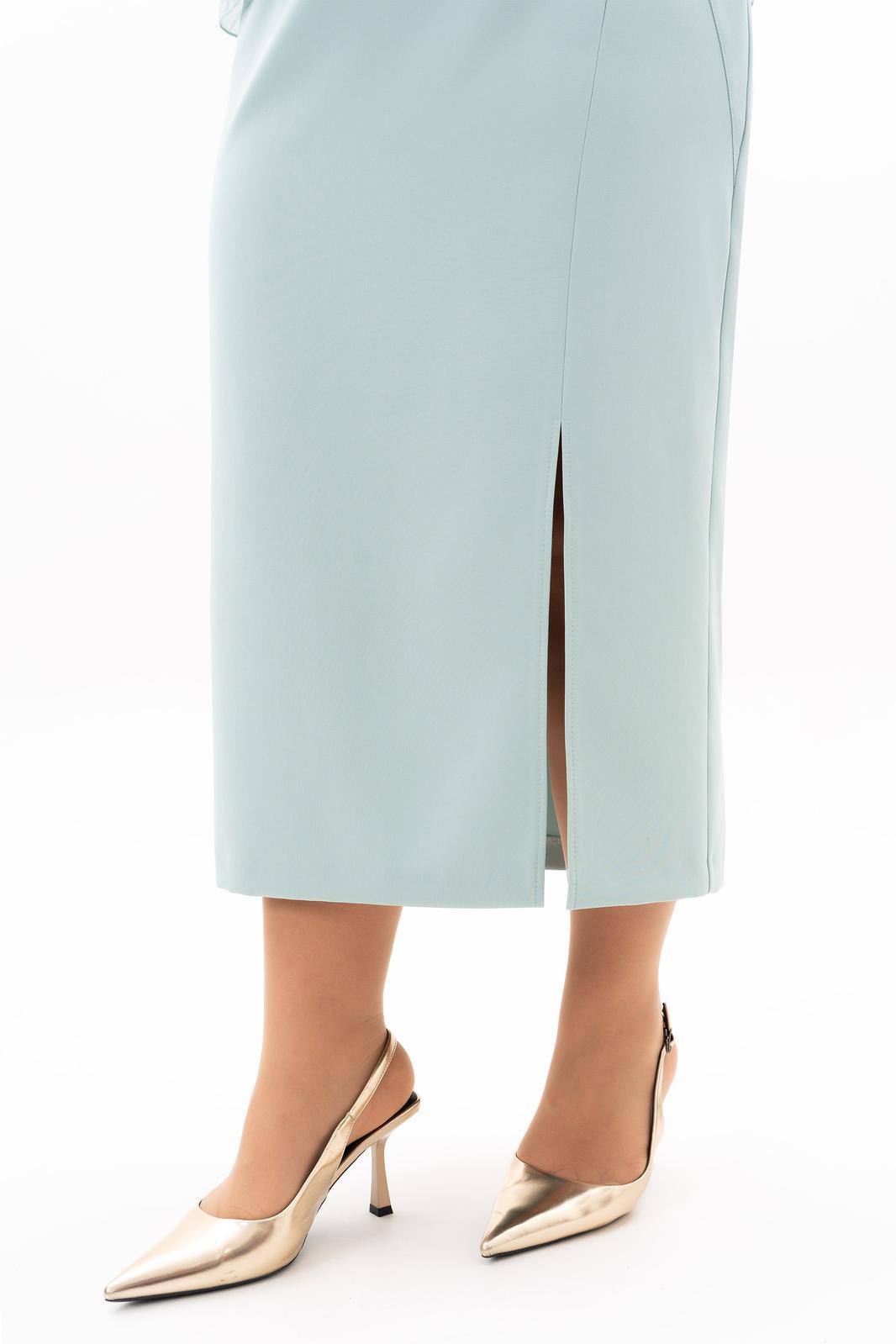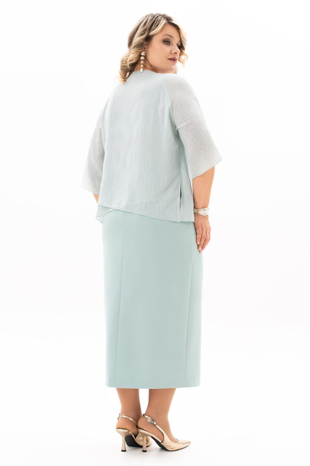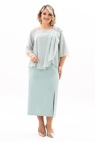 В мире моды женский костюм, состоящий из юбки и блузы, занимает особое место, объединяя элегантность, комфорт и практичность. Наш костюм, выполненный из высококачественной ткани c стрейч-эфектом. На полочки блузы есть нагрудные выточки с проймы, фигурный вырез горловины. Верхняя часть переда блузы декорирована мягкими складками и съёмной брошью, в боковых швах разрезы. Спинка без среднего шва. Модель блузы имеет и втачной рукав и реглан, длиной 3/4. Юбка демонстрирует утончённый дизайн с небольшим разрезом, который добавляет нотку игривости и женственности. Разрез не только делает образ более динамичным , но и придаёт ему определённую изюминку, позволяя Вам чувствовать себя уверенно и раскрепощено . Удобная и комфортная юбка на подкладке, слегка заужена к низу с застёжкой сзади на молнию и пуговицу. По поясу в области боковых швов есть эластичная тесьма, которая создаёт удобную посадку юбки на талии. Отличный вариант для офиса и вечернего гардероба, а также и просто для повседневного применения. Грация, изящество, утончённые декоративные элементы делают этот костюм уникальным. В этом костюме Вы будете неотразимы как в повседневной жизни, так и на любом торжестве.