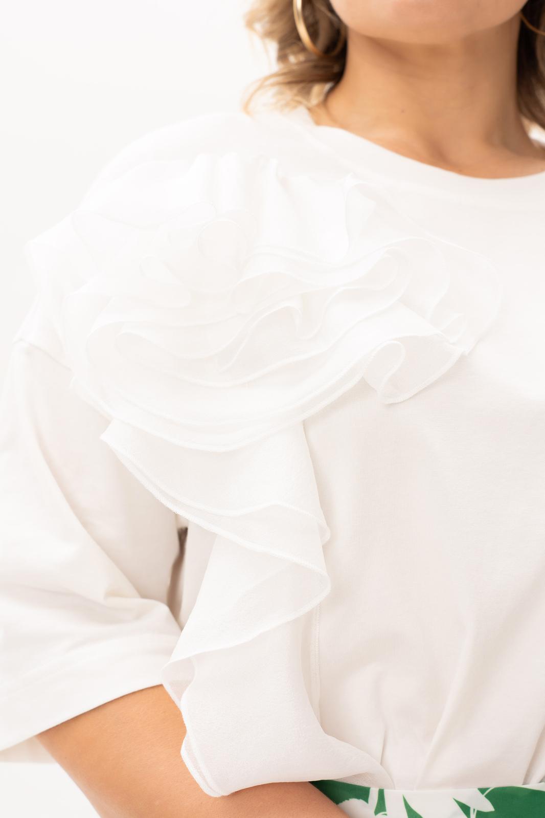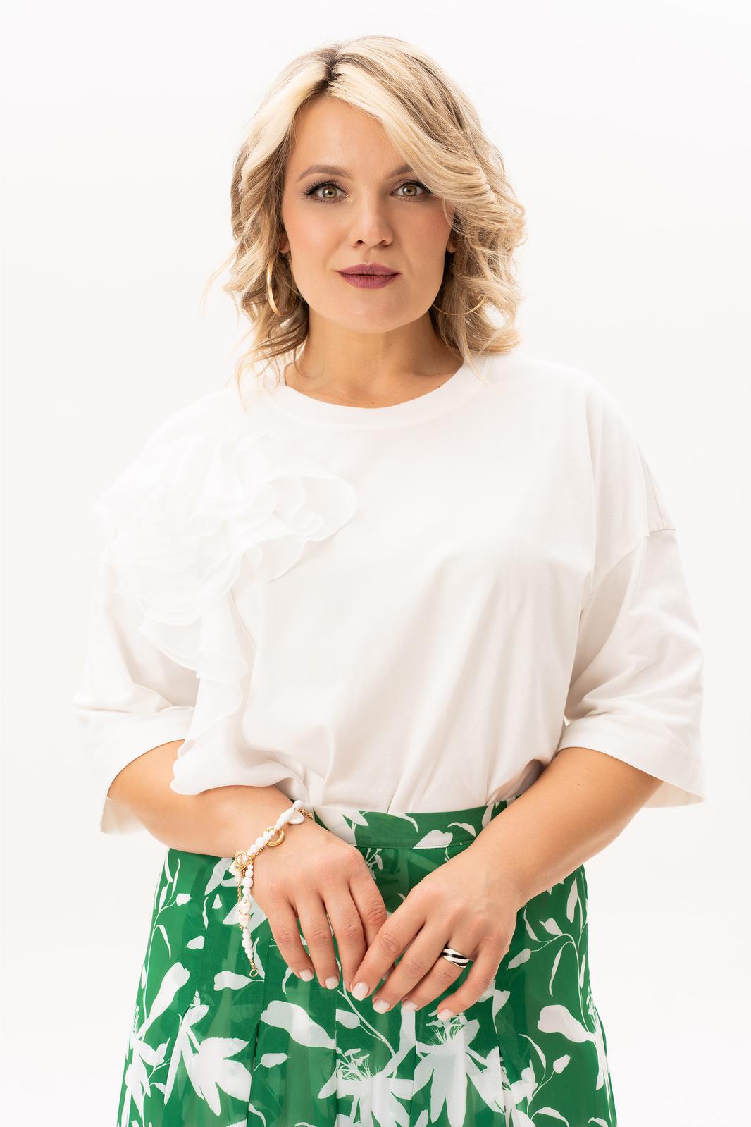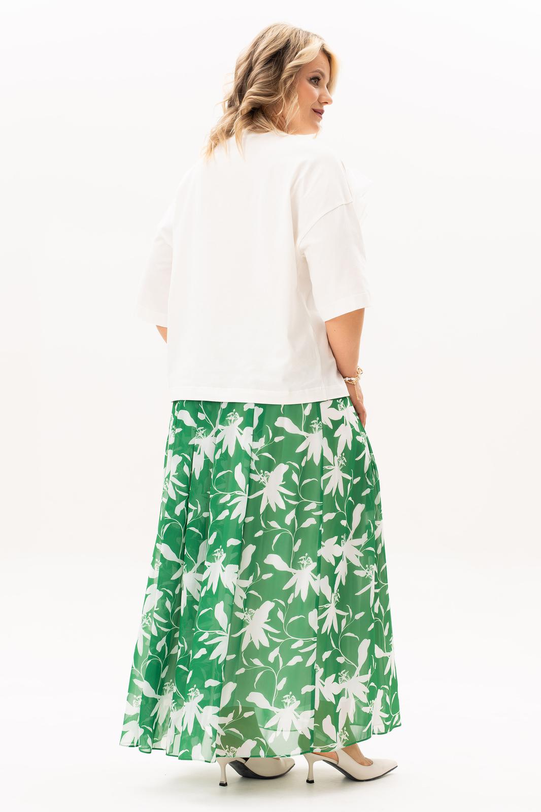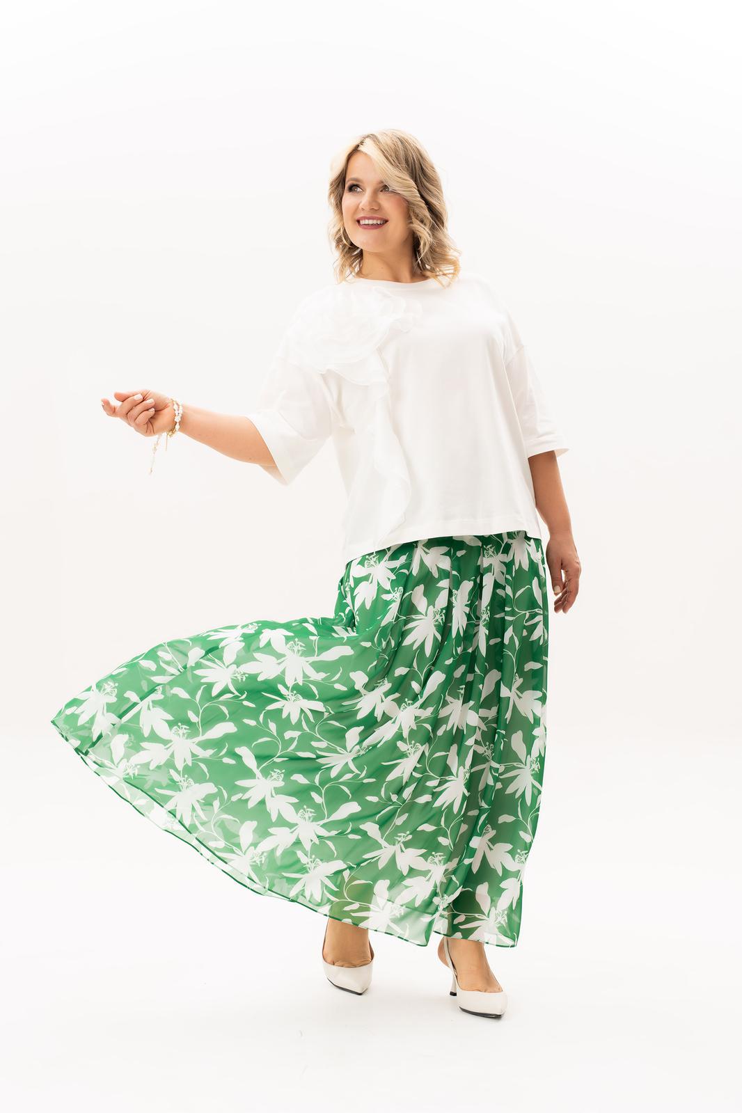 Женский юбочный комплект - идеальное решение для создания стильного и делового образа. Сочетание молочной нарядной блузы с шифоновой юбкой из принтованной ткани. Нарядная блузка оверсайз с пришивным цветком идеально подойдет для создания ярких и стильных образов в любое время года. Она выделяется своим уникальным и запоминающимся дизайном, который не оставит равнодушной ни одну модницу. Изготовлена из легкой и приятной к телу ткани, блузка обеспечивает комфорт и удобство во время ношения. Почему она покорит твоё сердце: мягкий дышащий хлопок , универсальный крой , элегантные детали. Комфортная, нарядная, длинная юбка-трапеция из шифона с обработанными бантовыми складками по талии. В боковой шов вставлена потайная молния. Юбка на поясе на петлю и пуговицу и частично на резинке. Лаконичный и элегантный фасон комплекта позволит носить его в повседневной жизни, а также как праздничный или вечерний наряд. Покупая этот комплект, Вы приобретаете два полноценных изделия: блузу и юбку, благодаря которым можно сделать несколько образов.