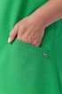 Комфортное платье А-силуэта из плательной ткани лен-вишер смотрится очень оригинально и интересно. Асимметричный перед со средним швом и диагональными подрезами вверху и в области бедер гармонично фрагментируют фигуру и наполняют образ легкостью. В боковых швах есть разрезы и функциональные карманы. Нагрудные вытачки создают прилегание в области груди. Спинка со средним швом, рукав короткий, с патой и пуговицей. Модель украшена изящной нашивкой. Платье идеально выручит Вас на любой случай.