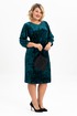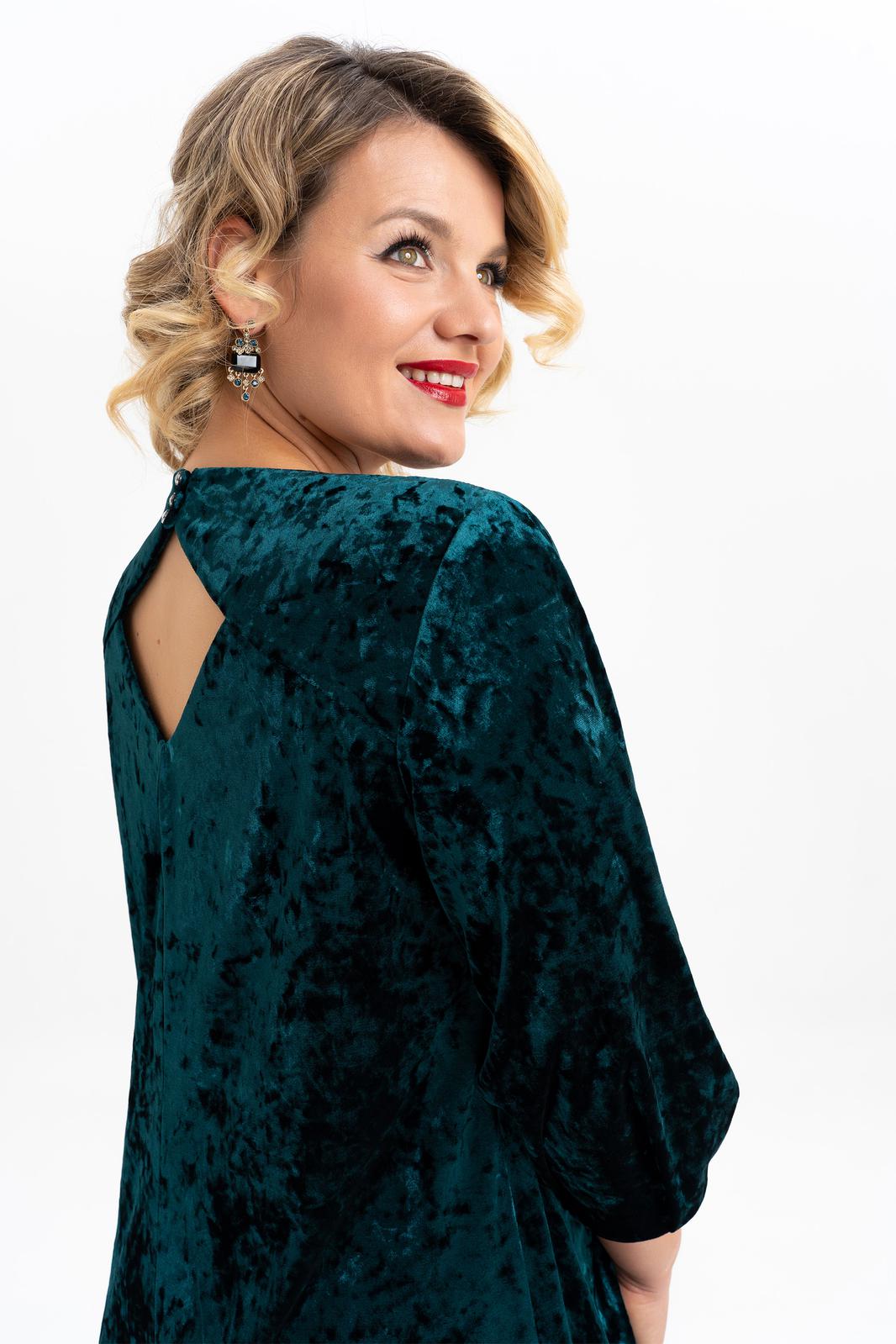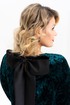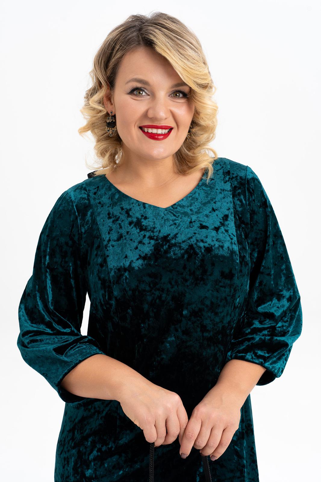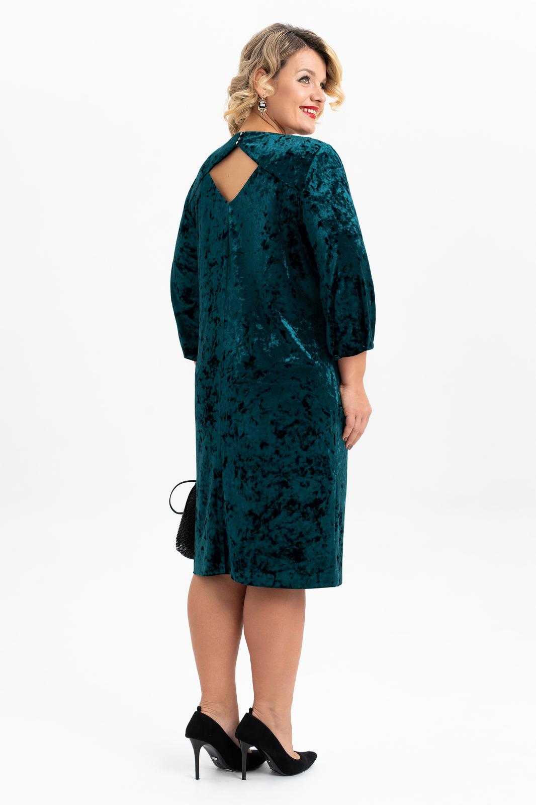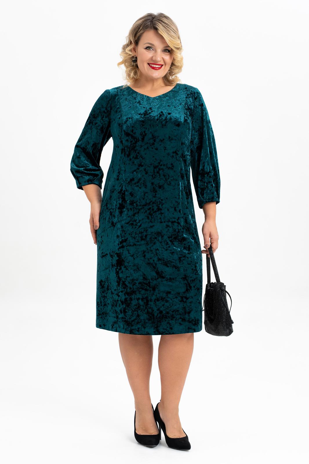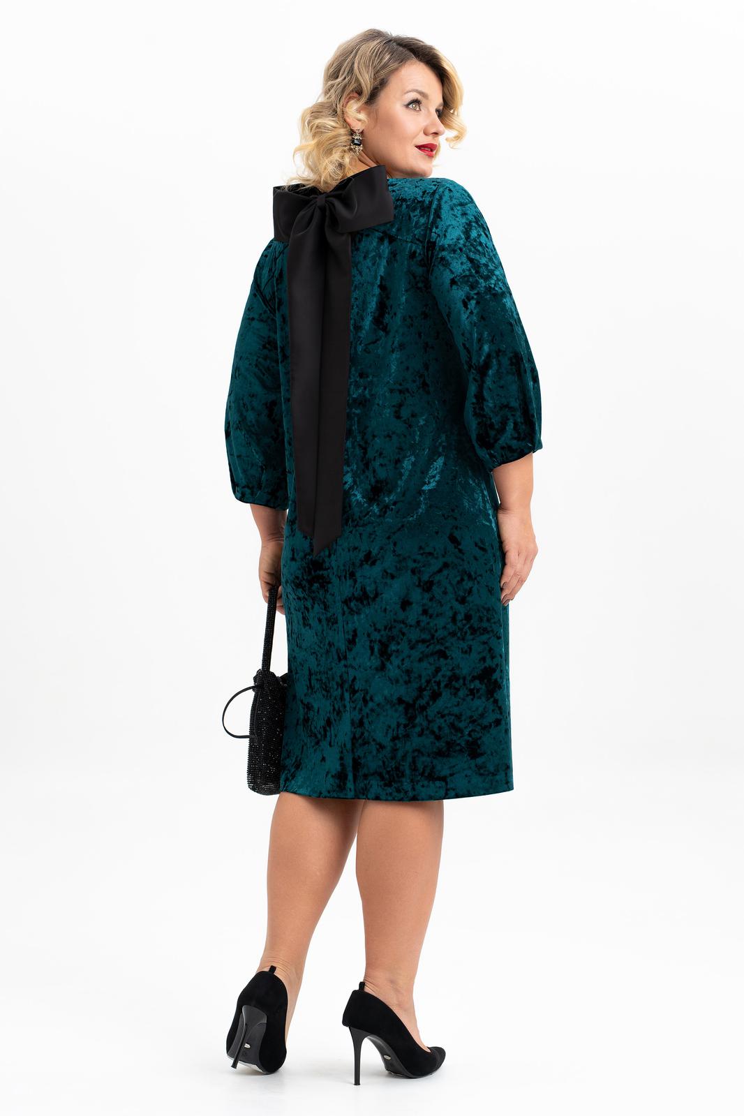 Элегантное нарядное платье классической длины , ниже колена выполнено из мягкого эластичного бархата. Прямой силуэт деликатно подчеркивает женственные формы. Классический вырез-лодочка горловины безупречной глубины эффектно преподносит зону декольте. Воздушный втачной рукав длиной 3/4, по низу которого есть складки усиливает ощущение хрупкости и женственности. По спинке обработана застежка на петли и пуговицы, и съемный бант из контрастной ткани. Стильное поддерживает трендовые тенденции у молодежи современное, такие вещи выделяют утонченный, изысканный вкус и элегантность у девушки модели.