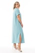 Комфортное летнее платье А-силуэта из плательной ткани лен-вишер смотрится очень оригинально и интересно. Платье из дышащего материала лен вишер идеально подойдет для полных женщин. Асимметричный перед со средним швом и диагональными подрезами в области бедер гармонично фрагментируют фигуру и наполняют образ легкостью. В боковых швах есть разрезы и функциональные карманы. Нагрудные вытачки создают прилегание в области груди. Спинка со средним швом, рукав короткий, с патой и пуговицей. Модель украшена изящной нашивкой. Элегантное и классическое платье легко комбинировать, позволяя создать и деловой стиль, и вечерний образ для девушек и женщин всех возрастов. Платье станет отличным выбором для учителей на последний звонок или даже на день рождения. Удобный крой и стильный дизайн делают его идеальным для пышных дам, на все праздники, а также для вечерних прогулок.