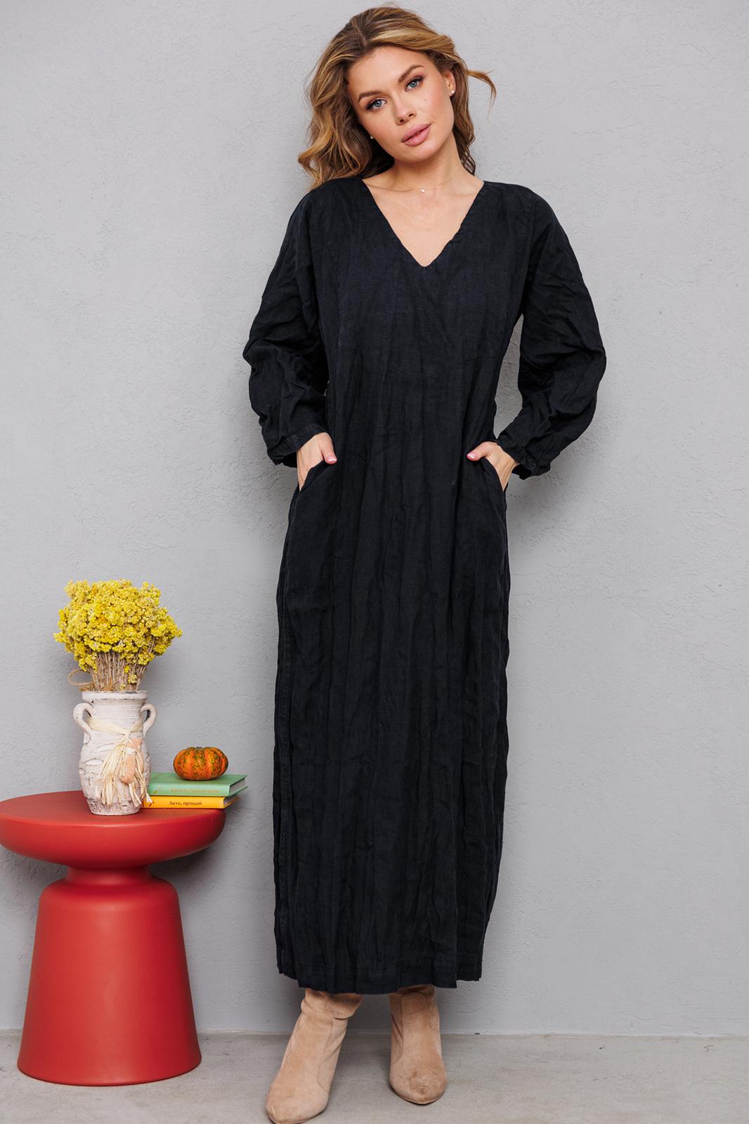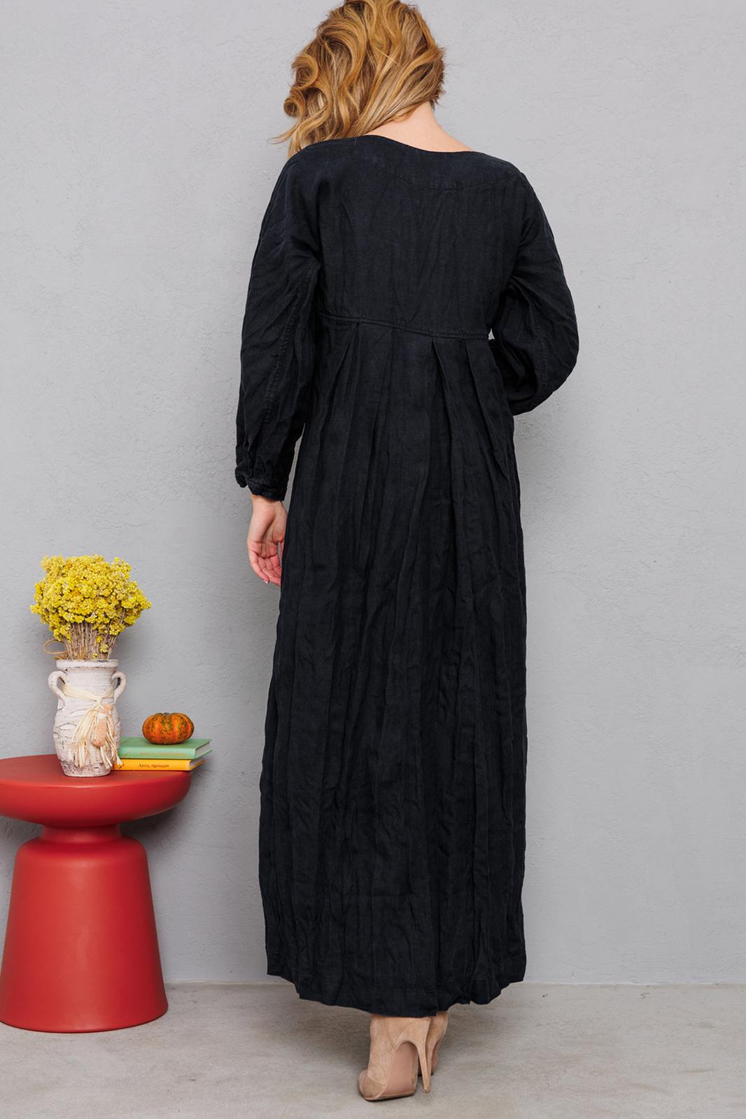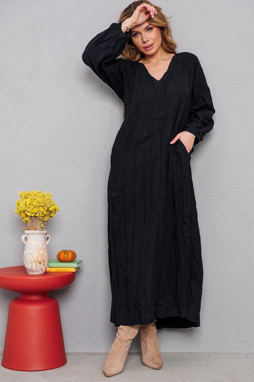 Натуральное льняное шикарное платье со смыслом. Каждое платье бренда А М У Л Е Т создано с применением древних славянских принципов по изготовлению обережной одежды. Горловина глубоким уголком, по переду интересные карманы, по спинке очень красиво струящиеся широкие складки и рукав 7/8 со складочками по низу. Всё вместе смотрится очень гармонично и эффектно. На фото из-под платья выглядывает второе платье. Это для утепления можно надевать нашу модель №9729. Заказывается отдельно. На груди всех платьев идёт очень глубокая обтачка уголком к талии, что создает эффект стройности и дополнительно защищает грудь и позволяет ходить без нижнего белья. Обращаю Ваше внимание на то, что к заказу надо подходить осознанно, с пониманием ценности, а возвраты или неоплата, не в вашу копилку Благочестия, как говорится ). Мы Вас Любим и в комплекте к платью прилагаем сумку-шопер с логотипом бренда. Это Платье для Радости и Благости! Наслаждайтесь!