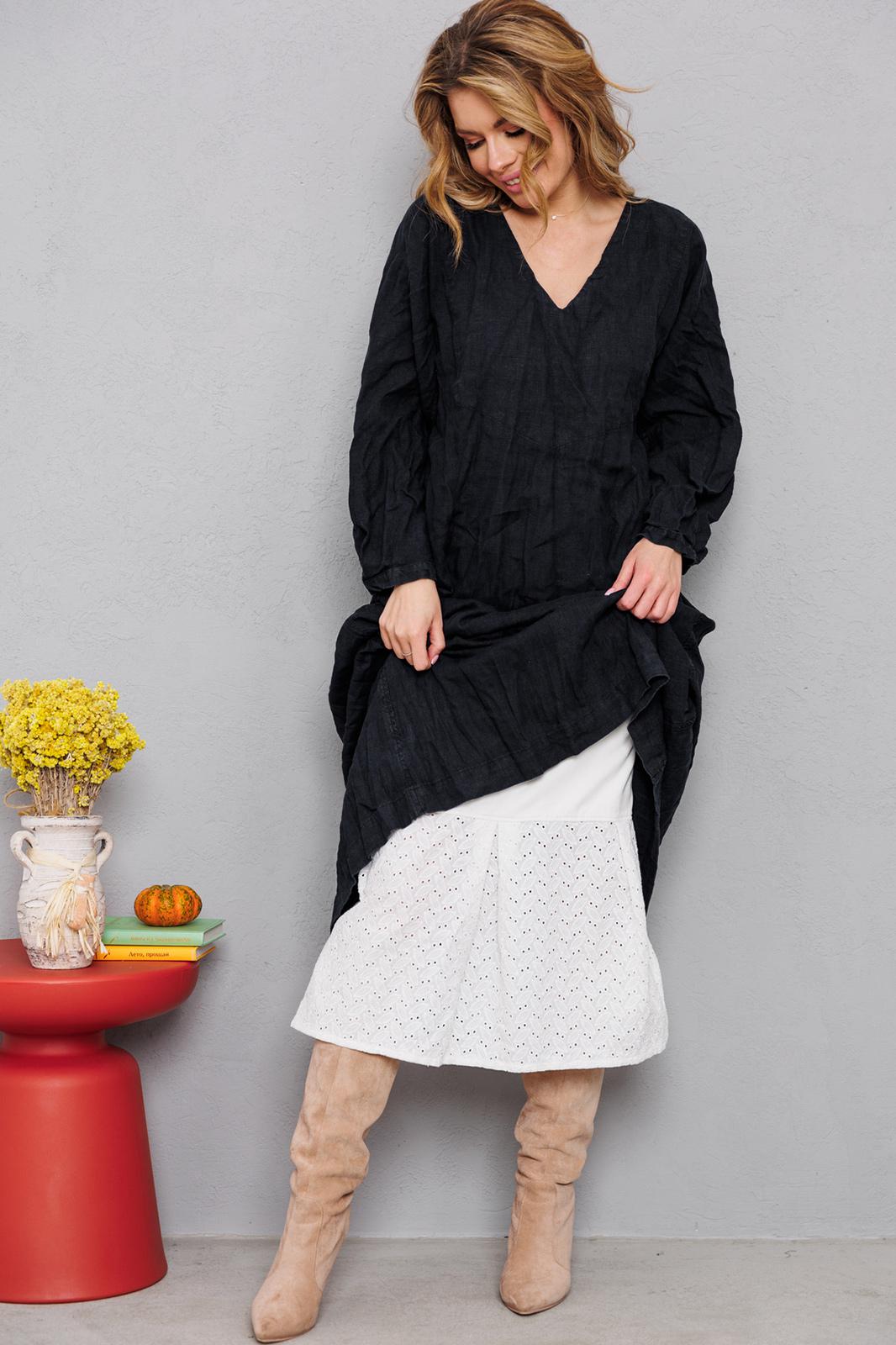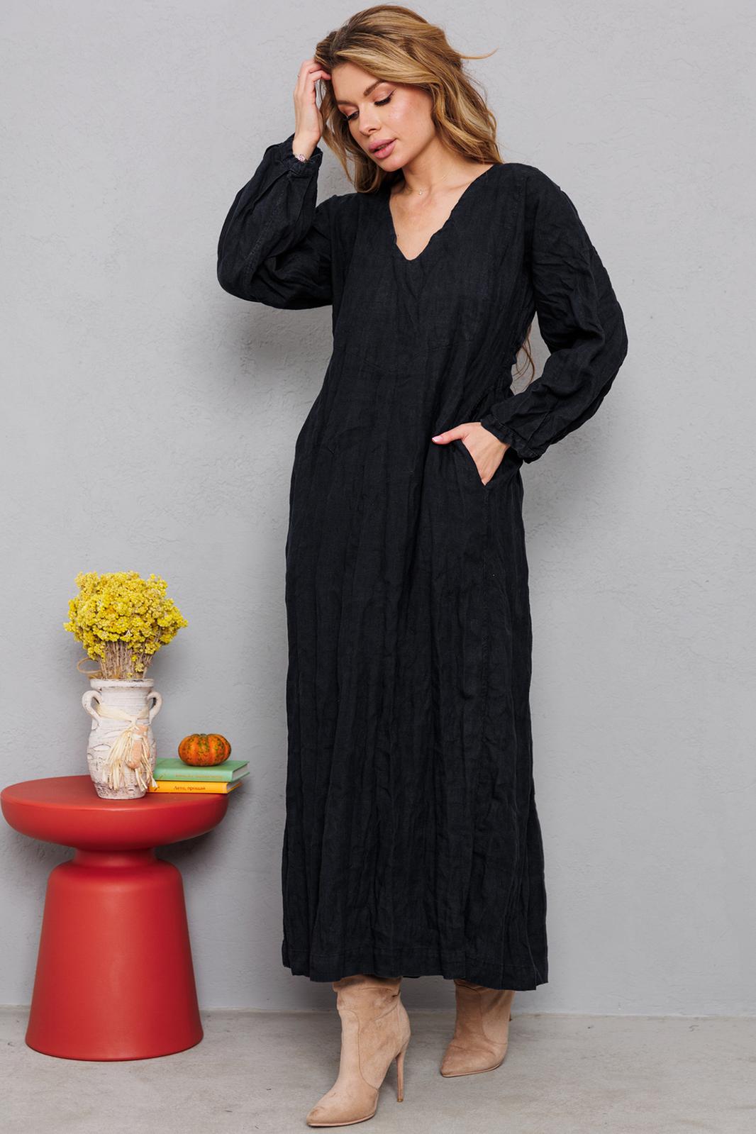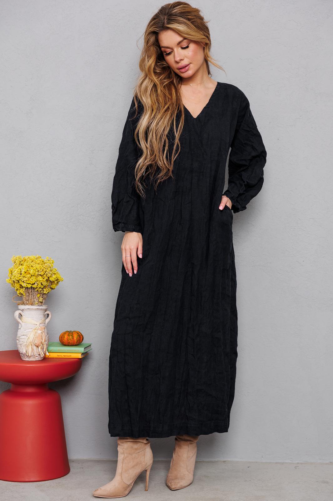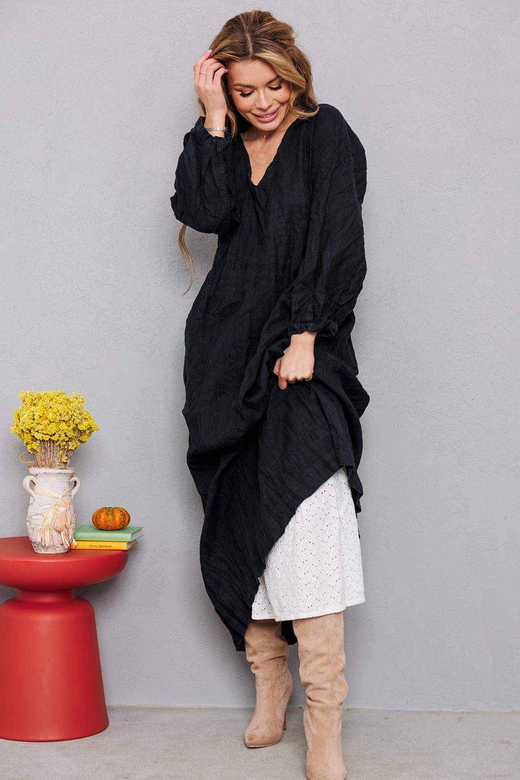 Натуральное льняное шикарное платье со смыслом. Каждое платье бренда А М У Л Е Т создано с применением древних славянских принципов по изготовлению обережной одежды. Горловина глубоким уголком, по переду интересные карманы, по спинке очень красиво струящиеся широкие складки и рукав 7/8 со складочками по низу. Всё вместе смотрится очень гармонично и эффектно. На фото из-под платья выглядывает второе платье. Это для утепления можно надевать нашу модель №9729. Заказывается отдельно. На груди всех платьев идёт очень глубокая обтачка уголком к талии, что создает эффект стройности и дополнительно защищает грудь и позволяет ходить без нижнего белья. Обращаю Ваше внимание на то, что к заказу надо подходить осознанно, с пониманием ценности, а возвраты или неоплата, не в вашу копилку Благочестия, как говорится ). Мы Вас Любим и в комплекте к платью прилагаем сумку-шопер с логотипом бренда. Это Платье для Радости и Благости! Наслаждайтесь!