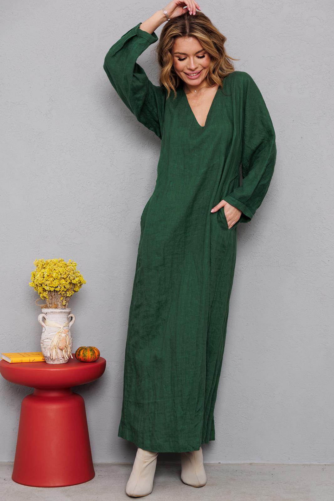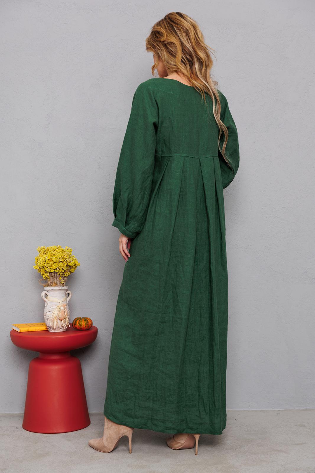 Натуральное льняное шикарное платье со смыслом. Каждое платье бренда А М У Л Е Т создано с применением древних славянских принципов по изготовлению обережной одежды. Горловина глубоким уголком, по переду интересные карманы, по спинке очень красиво струящиеся широкие складки и рукав 7/8 со складочками по низу. Всё вместе смотрится очень гармонично и эффектно. На фото из-под платья выглядывает второе платье. Это для утепления можно надевать нашу модель №9729. Заказывается отдельно. На груди всех платьев идёт очень глубокая обтачка уголком к талии, что создает эффект стройности и дополнительно защищает грудь и позволяет ходить без нижнего белья. Обращаю Ваше внимание на то, что к заказу надо подходить осознанно, с пониманием ценности, а возвраты или неоплата, не в вашу копилку Благочестия, как говорится ). Мы Вас Любим и в комплекте к платью прилагаем сумку-шопер с логотипом бренда. Это Платье для Радости и Благости! Наслаждайтесь!