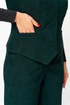 Жилет полуприлегающего силуэта, полочка жилета с вертикальными рельефами и прорезными функциональными карманами с листочкой. Горловина V-образной формы. Спинка со средним швом и вертикальными рельефами.