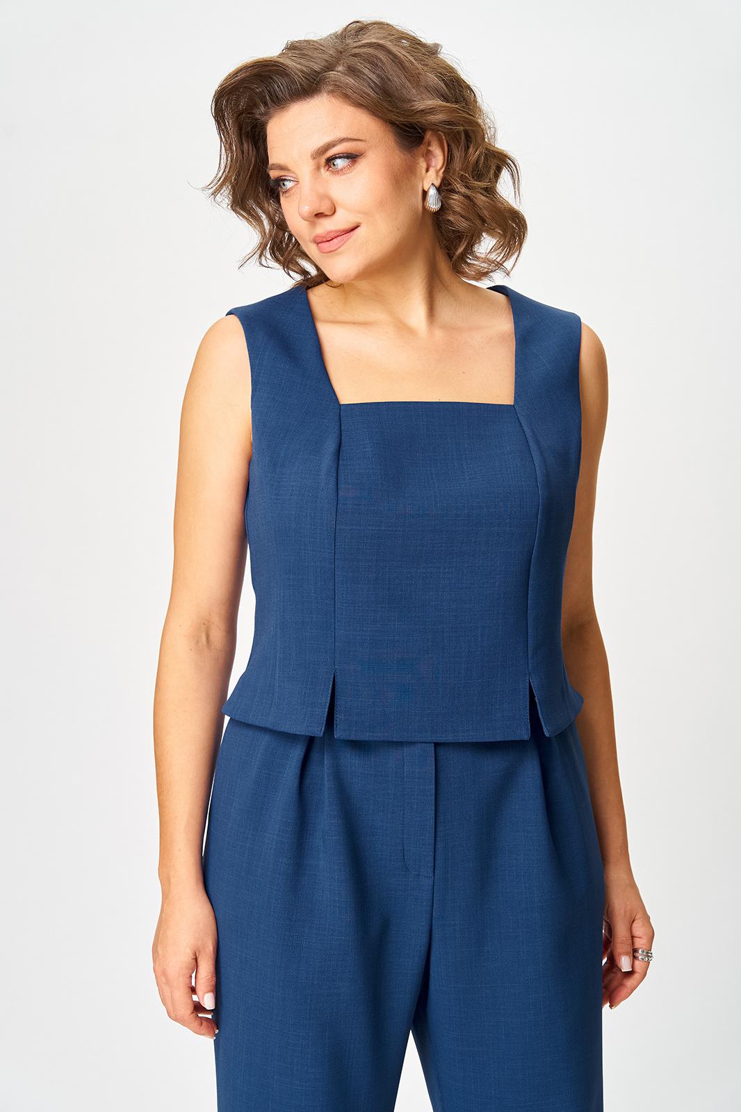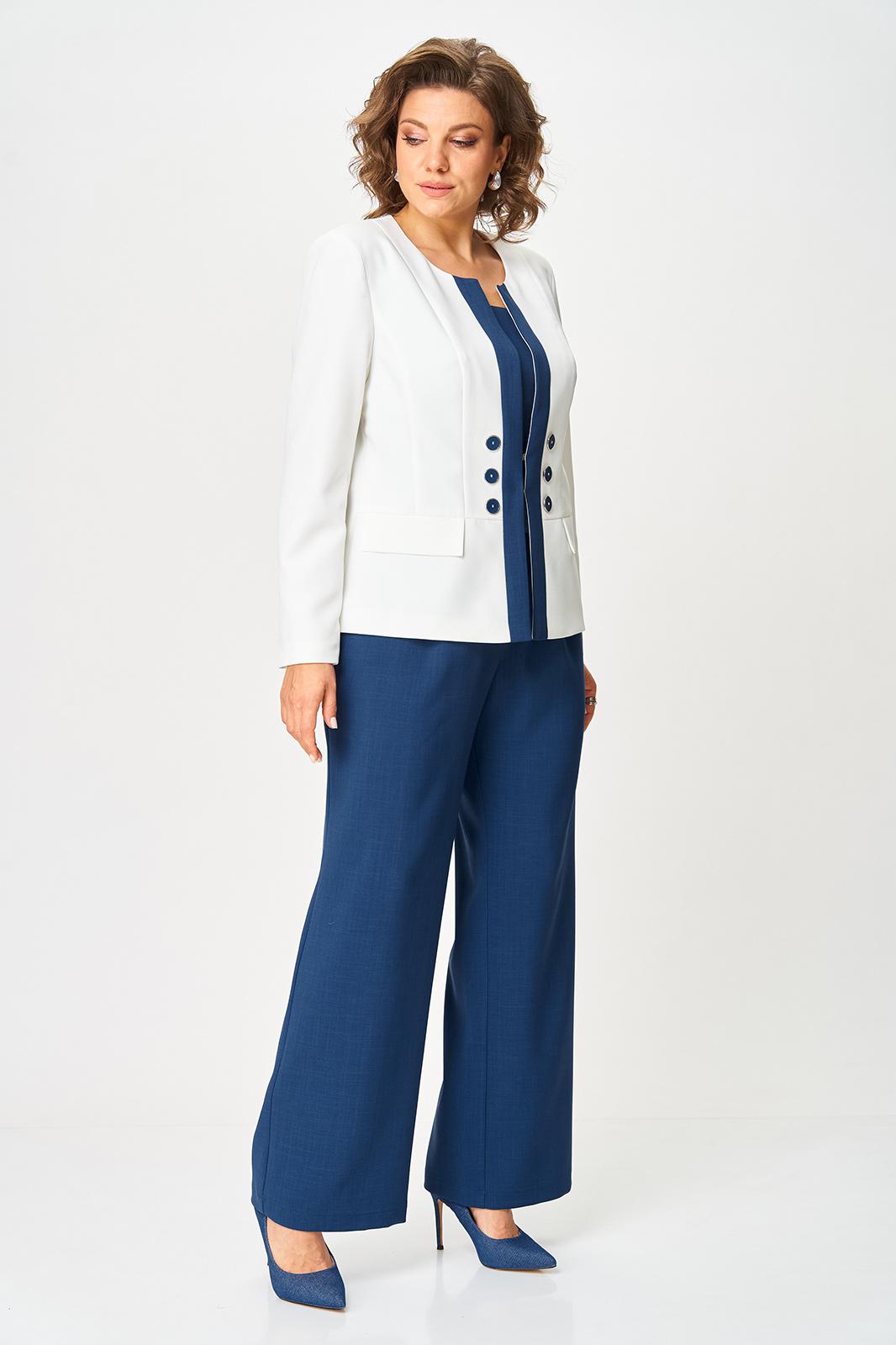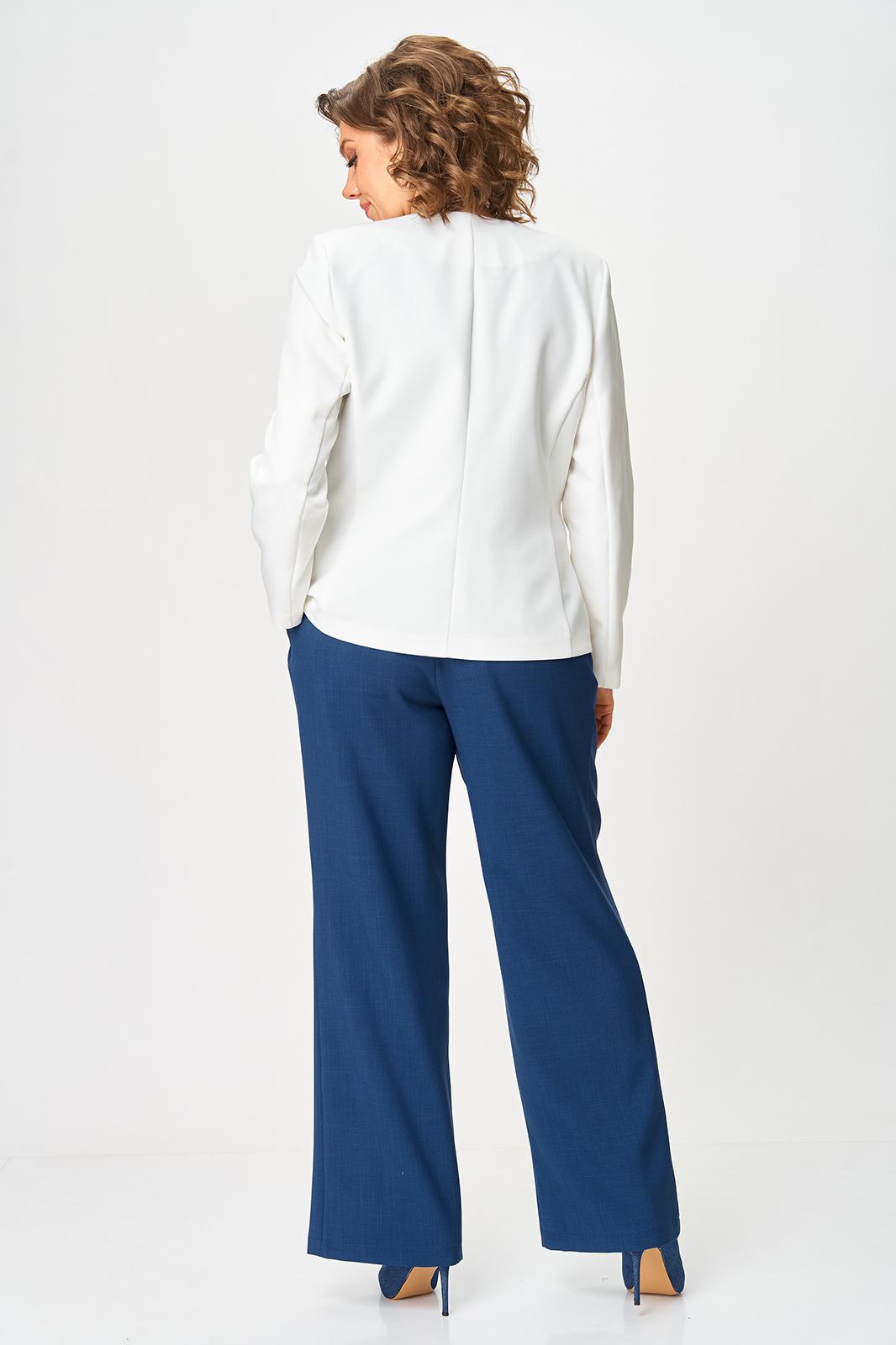 Костюм женский состоящий из топа, жакета и брюк выполнен из однотонной ткани двух контрастных цветов.