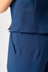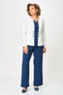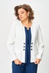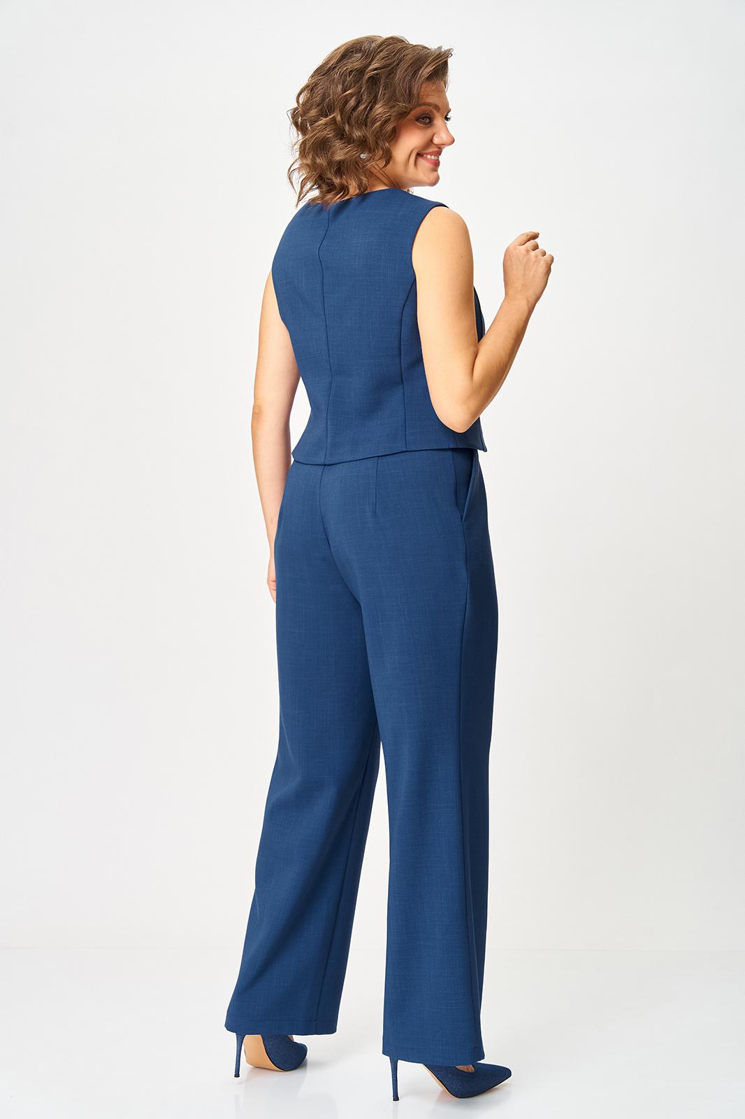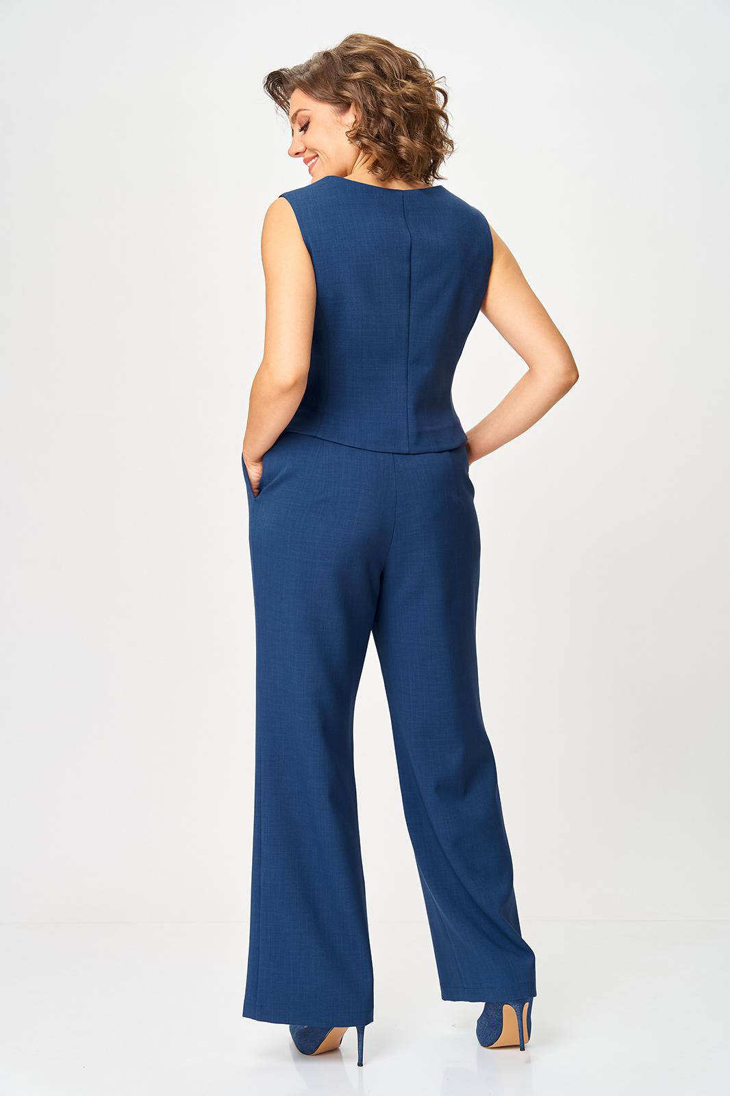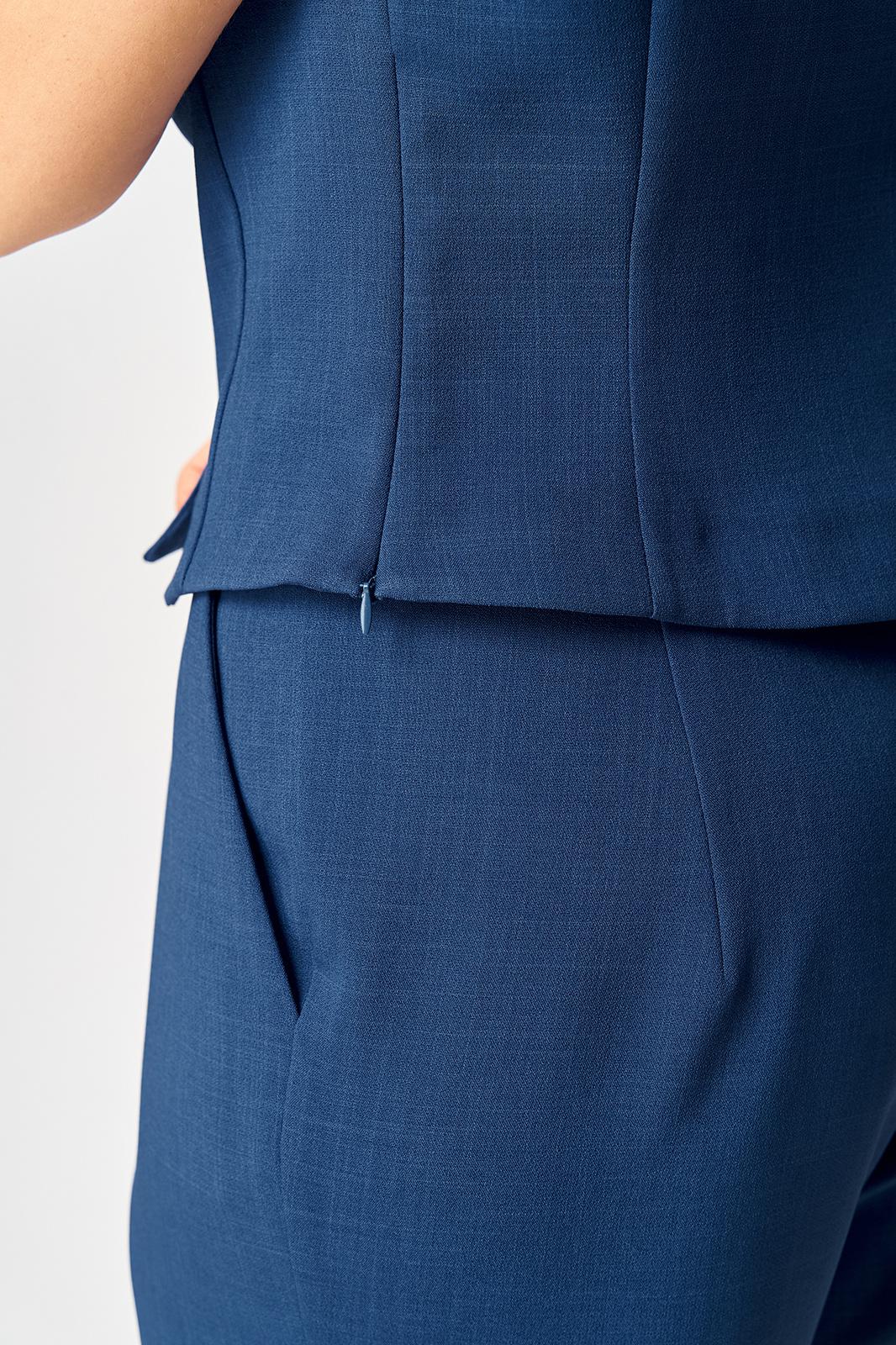 Костюм женский состоящий из топа, жакета и брюк выполнен из однотонной ткани двух контрастных цветов.