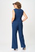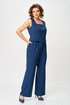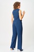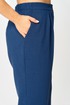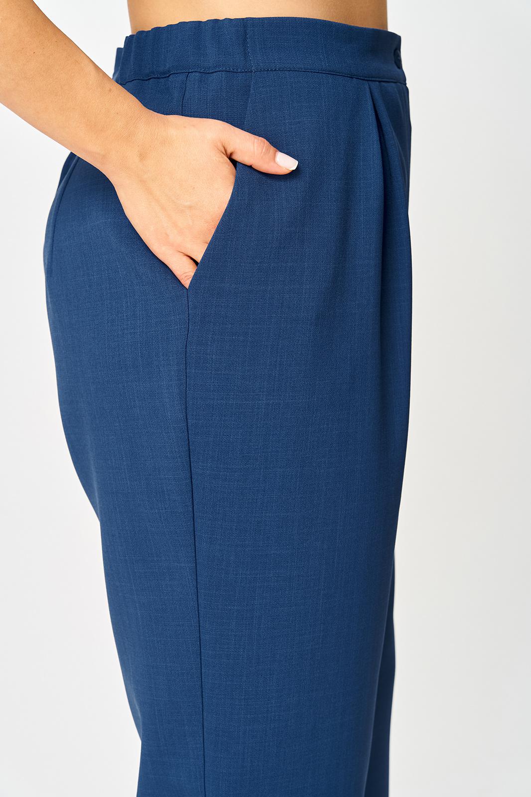 Брюки формы “палаццо”. По передней половинке выполнены наклонные карманы и по линии талии встречные складки. В среднем шве обработана застежка на молнию. По задним половинкам обработаны талиевые вытачки. Брюки на притачном поясе с эластичной тесьмой и застежкой на петлю и пуговицу.