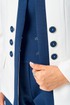 Жакет прямого силуэта. Полочка жакета с притачными планками по борту и центральной застежкой встык на потайные крючки и декором из пуговиц. Полочка с вертикальными рельефами, отрезной нижней частью и клапанами. Горловина круглой формы. Спинка со средним швом и вертикальными рельефами. Рукав длинный, втачной, двухшовный. Жакет на подкладке.