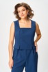 Топ полуприлегающего силуэта. Полочка топа с вертикальными рельефами, в нижней части которых обработаны разрезы. Горловина формы “каре”. Спинка топа со средним швом и вертикальными рельефами. В левом боковом шве обработана потайная молния.