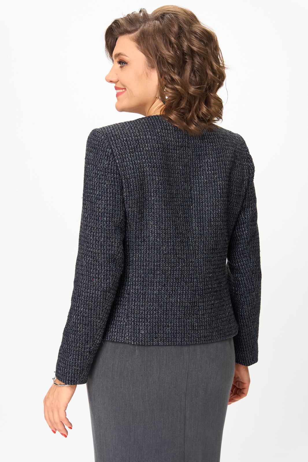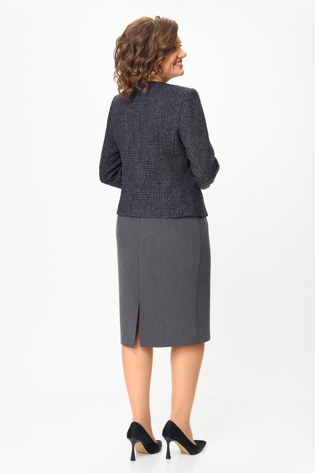 Комплект состоит из жакета и юбки. Жакет выполнен из твида, юбка из однотонной костюмной ткани.