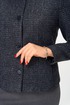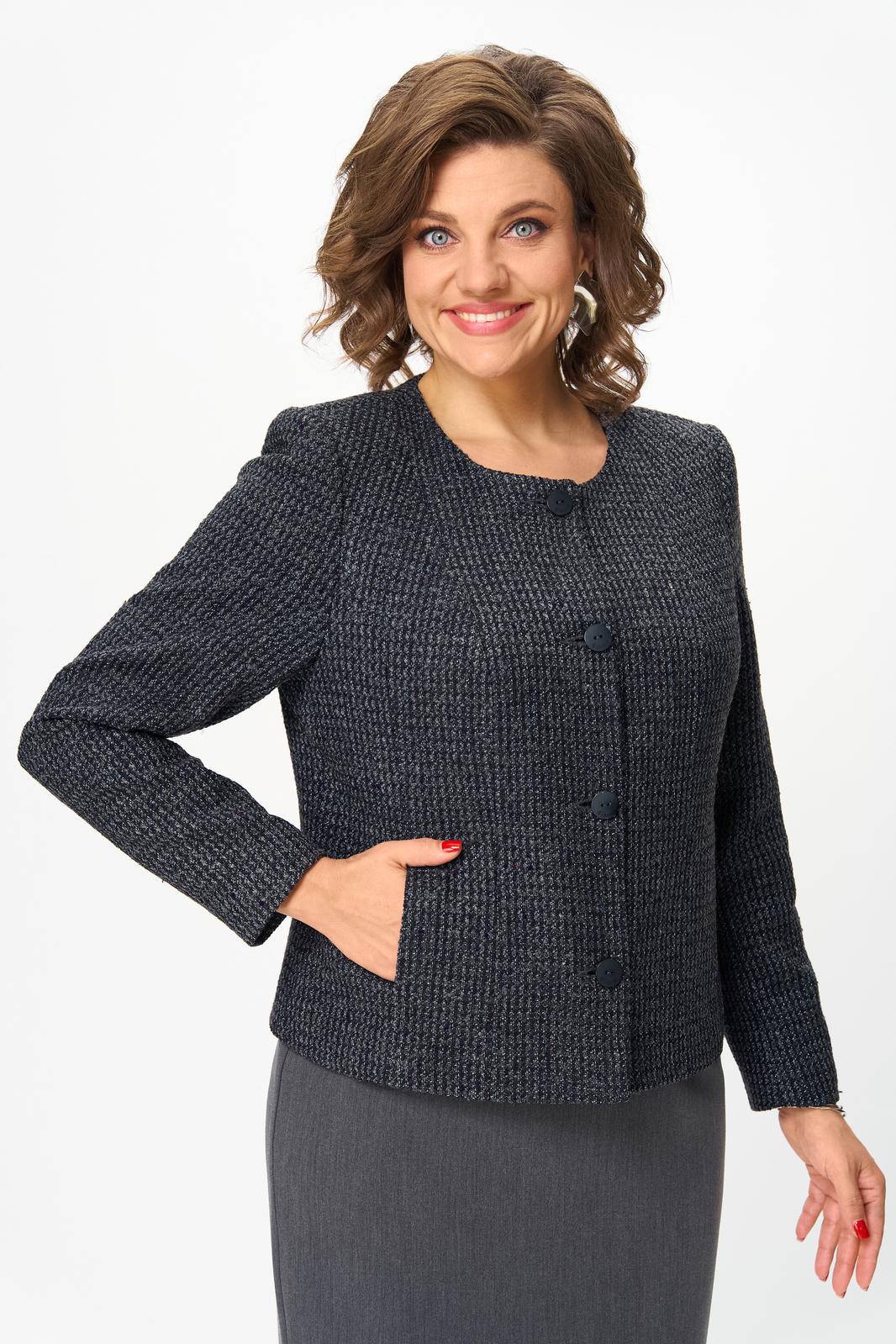 Жакет полуприлегающего силуэта. Полочка жакета с вертикальными рельефами и прорезным карманом в рельефе. Горловина круглой формы. Застежка однобортная на петли и пуговицы. Спинка со средним швом, вертикальными рельефами. Рукав втачной, двухшовный, длинный. Жакет на подкладке.