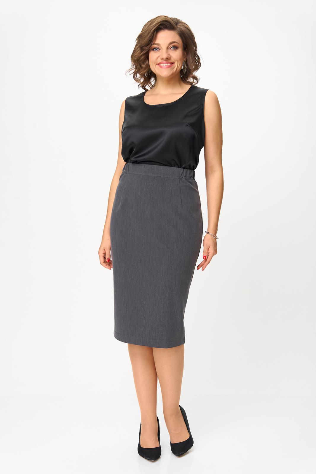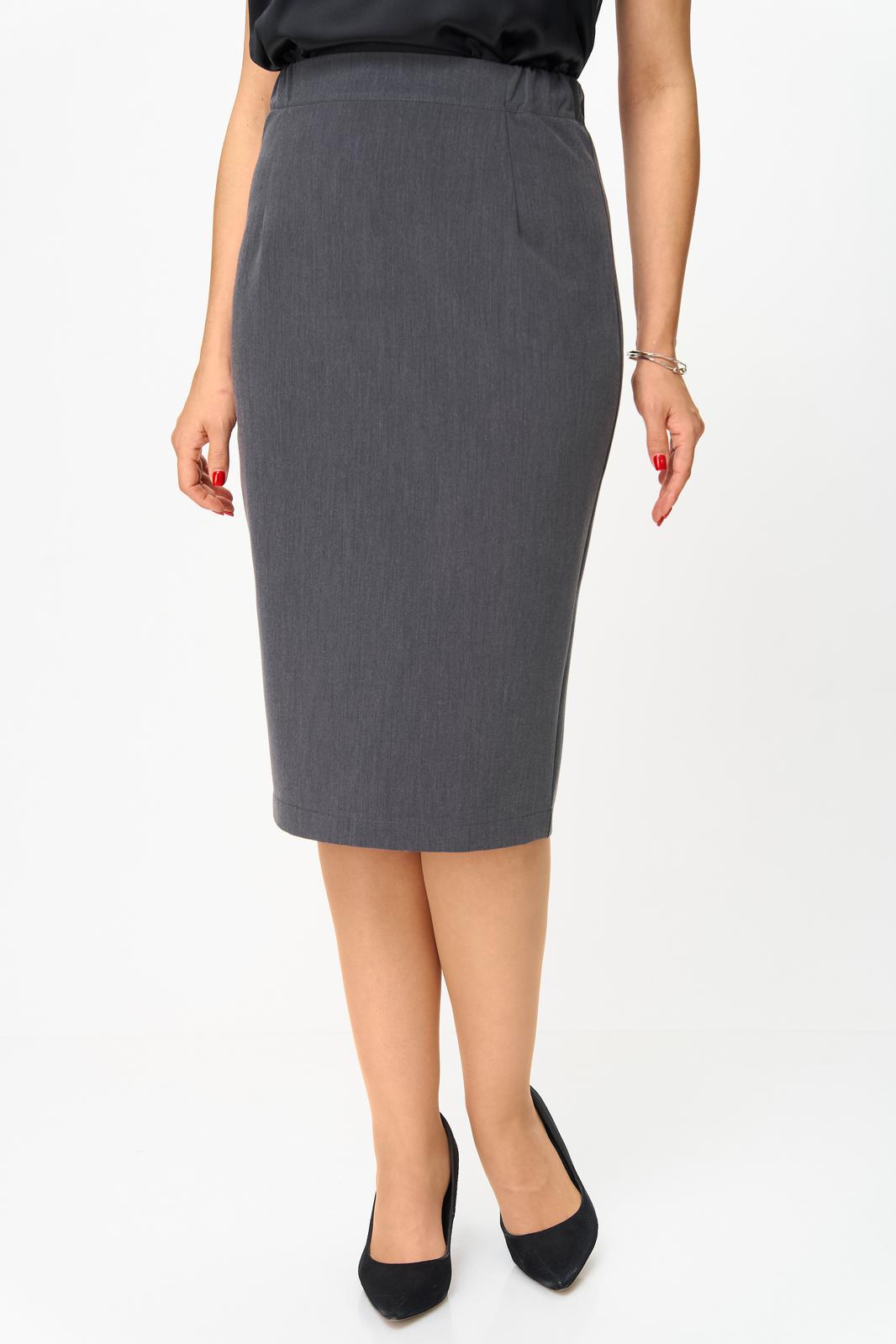 Юбка прилегающая по бедрам, зауженная к низу. Передняя часть юбки с талиевыми вытачками. Задняя часть юбки с талиевыми вытачками и со средним швом, в верхней части которого обработана застежка на потайную молнию, в нижней части разрез. Юбка на притачном поясе, с эластичной тесьмой и застежкой на петлю и пуговицу. Юбка на подкладке.